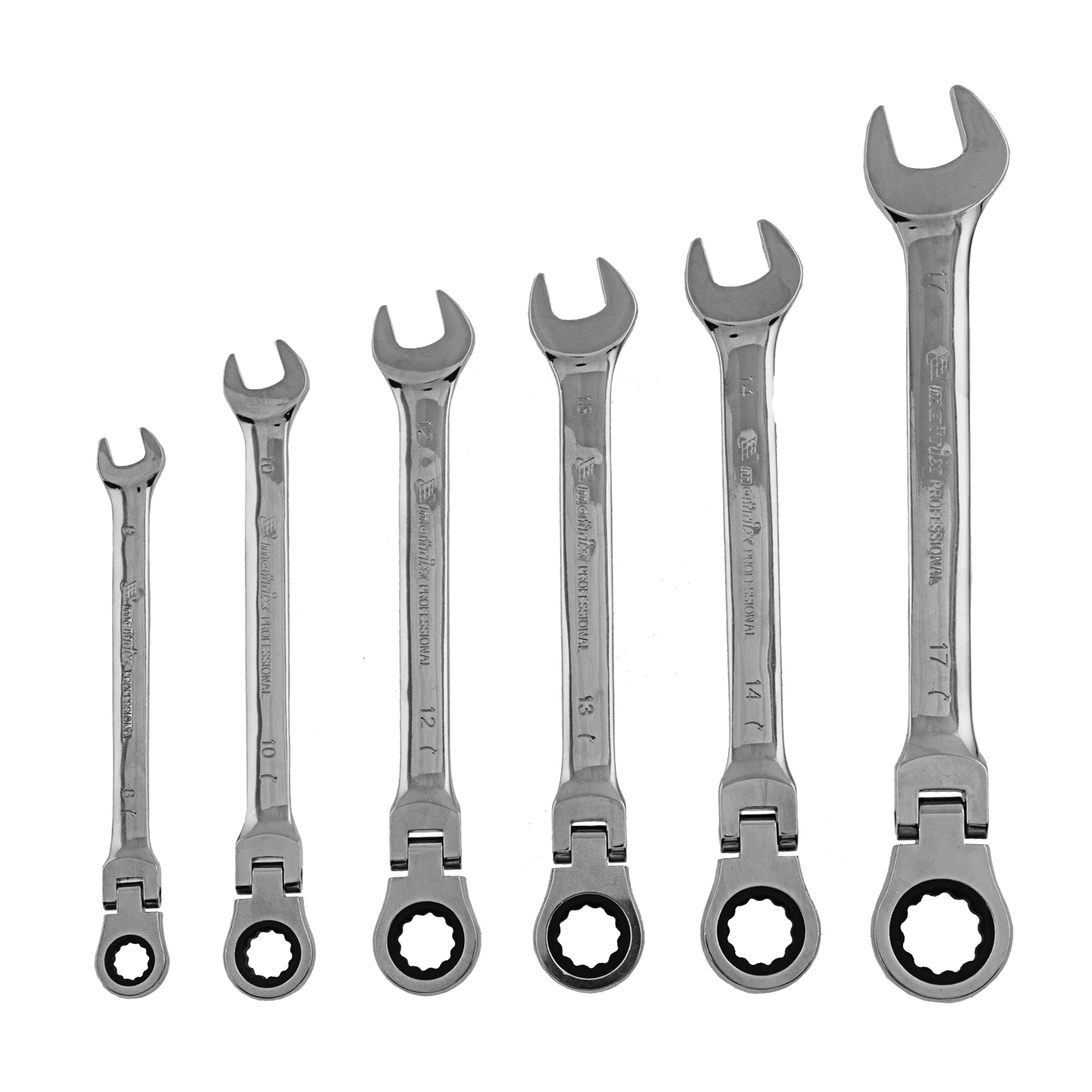 Набор ключей комбинированных трещоточных шарнирных - 6 шт, типоразмеры - 8, 10, 12, 13, 14, 17 |
