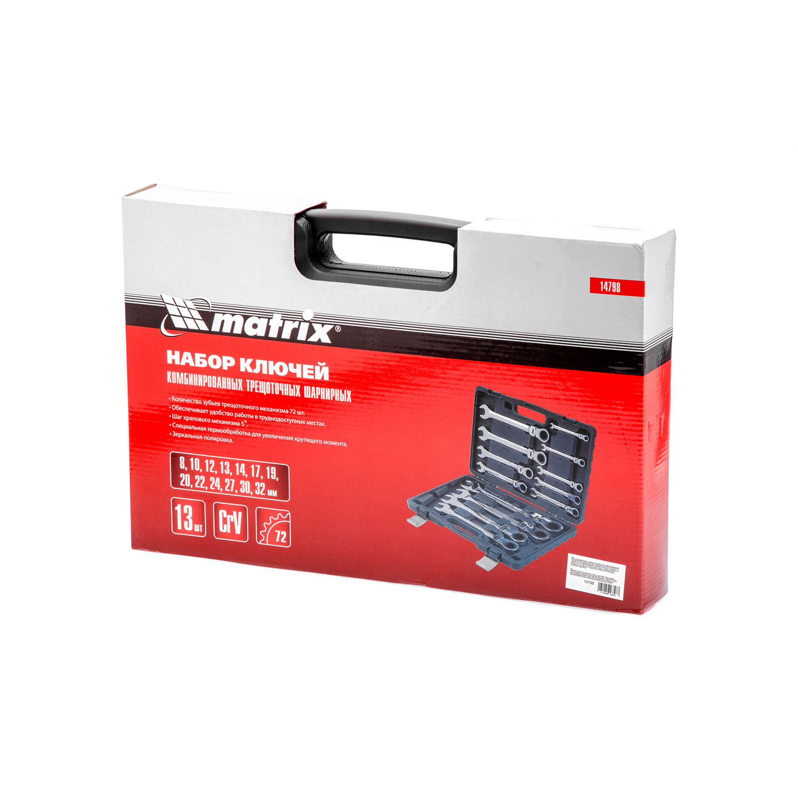Набор из 13 комбинированных трещоточных шарнирных ключей Matrix 14798 пригодится мастерам и автолюбителям для фиксации и раскручивания крепежных элементов. Трещоточный механизм повышает скорость работы и легко справляется даже с закисшим крепежом.