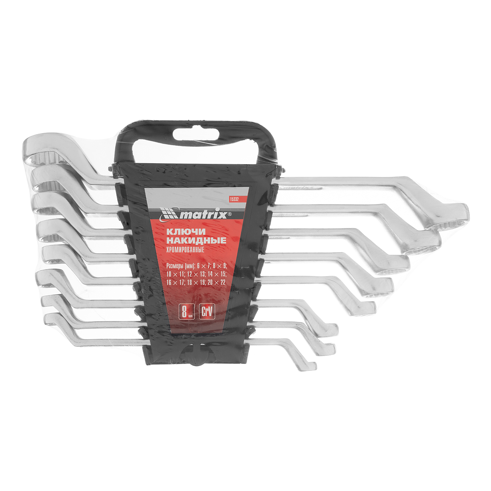 Набор ключей накидных, 6-22 мм, CR-V, 8 шт, полированный хром Matrix в Екатеринбурге
