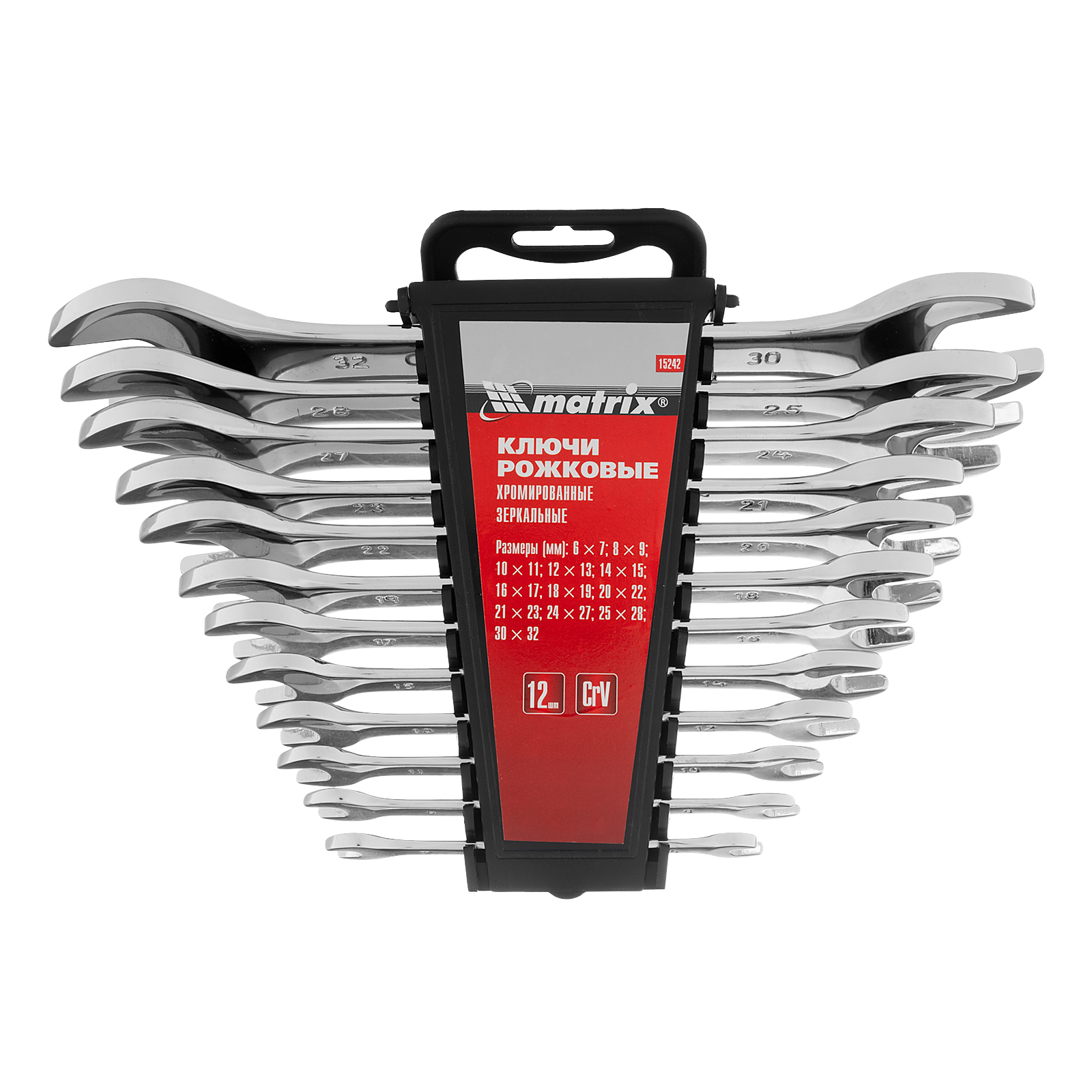 Набор ключей рожковых 12 шт, (6-32мм) CrV, EllipticaL зеркальное хромирование Matrix в Екатеринбурге