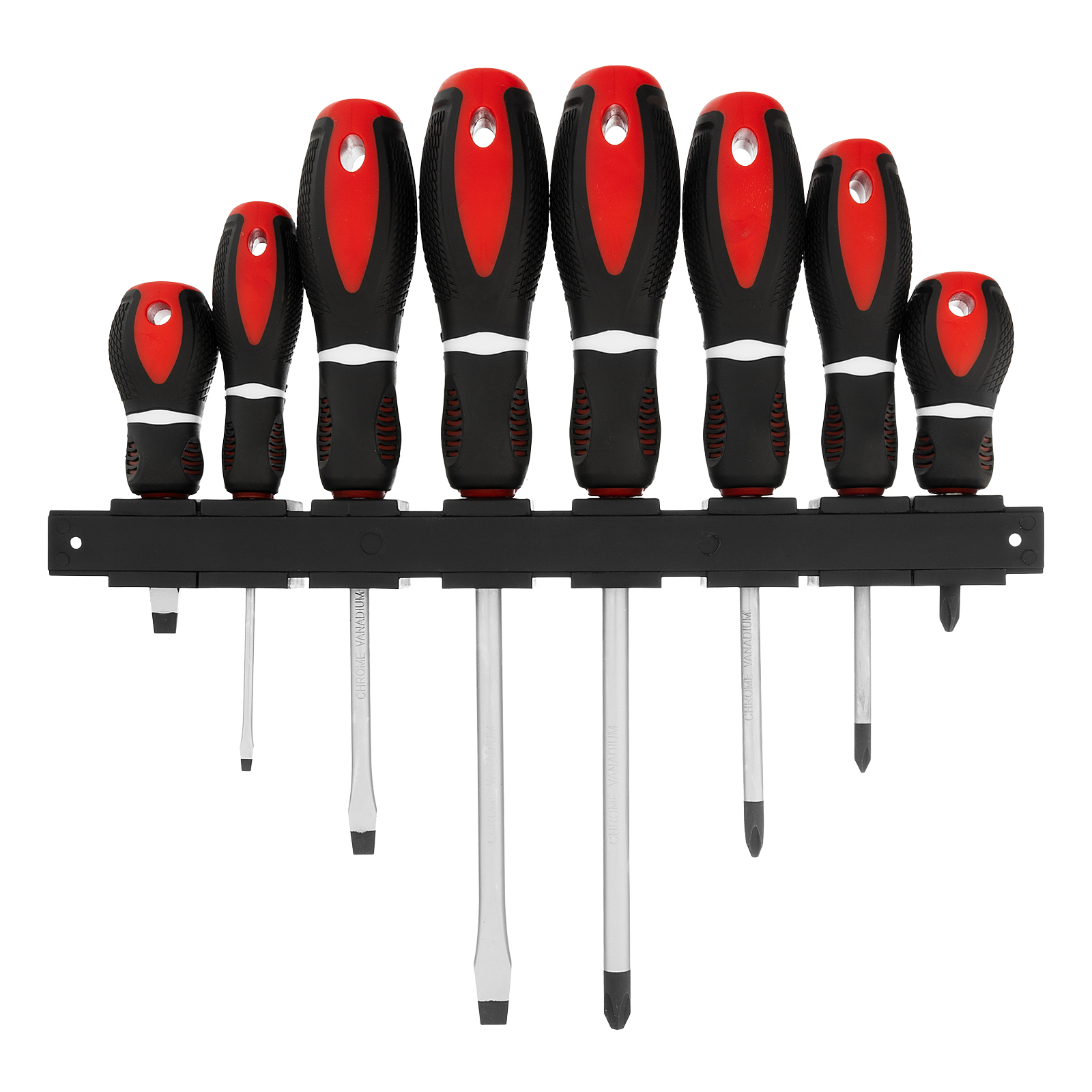 - Удобное хранение — отвертки поставляются в комплекте с пластиковой подвесной полкой.