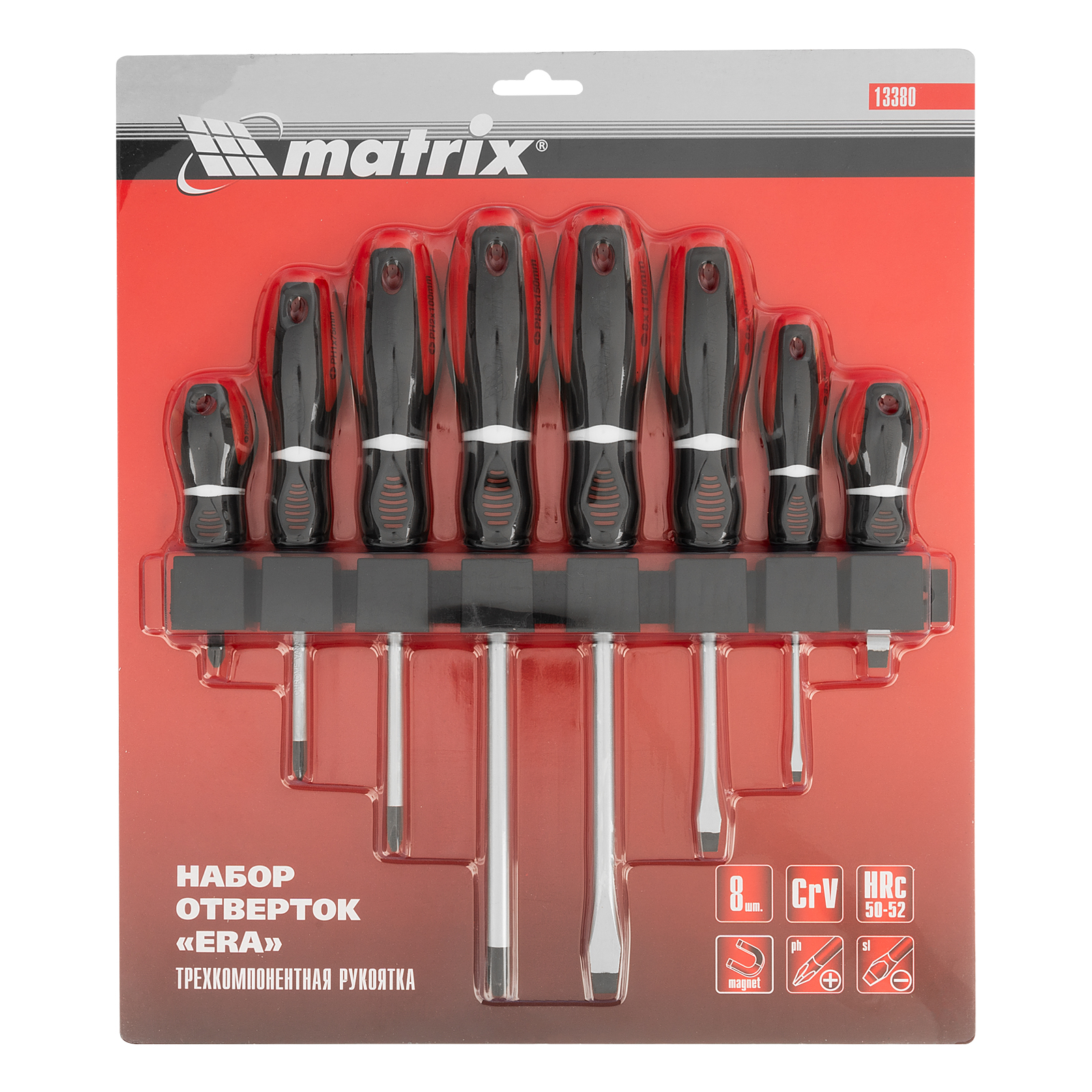 Набор Matrix «Era» 13380 включает в себя 8 отверток из стали CrV, с 3-компонентными рукоятками. Используется для закручивания и откручивания резьбового крепежа со шлицами PH и SL. Направлять отвертку с насаженным крепежом можно одной рукой, т.к. рабочая часть каждого инструмента намагничена. Набор рекомендован для профессионального применения и будет полезен во время ремонта оборудования и бытовой техники, а также при сборке мебели.