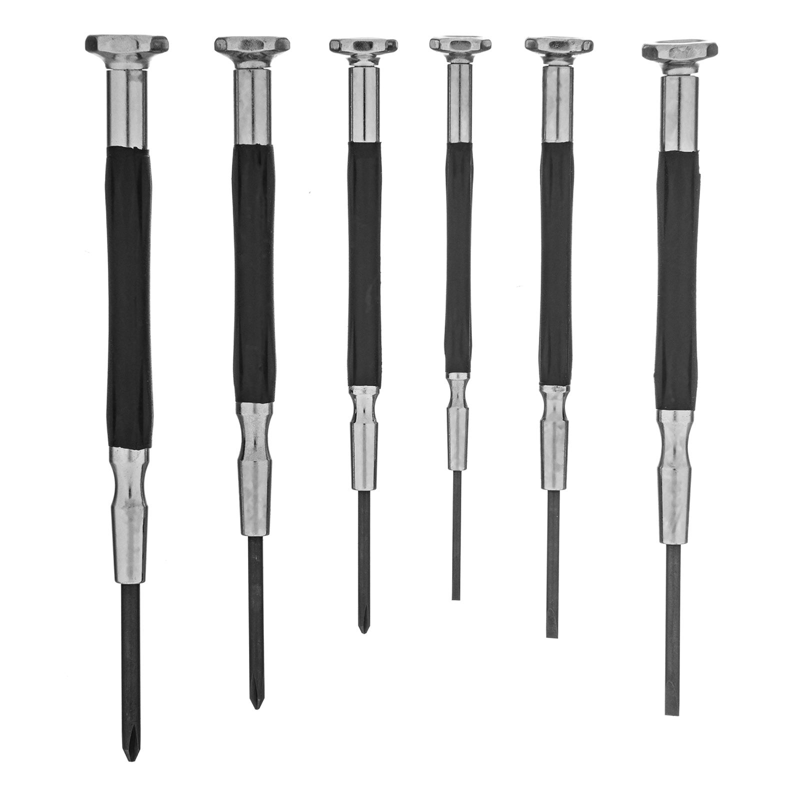 Набор отверток для точной механики Gross 13346, CrMo, с металлическими обрезиненными рукоятками, 6 предметов в боксе-трансформере, пригодится при монтаже/демонтаже микровинтов SL и PH. Высококачественное исполнение деталей набора позволяет использовать его для решения профессиональных задач в ходе ремонта электроники, очков и других мелких механизмов.