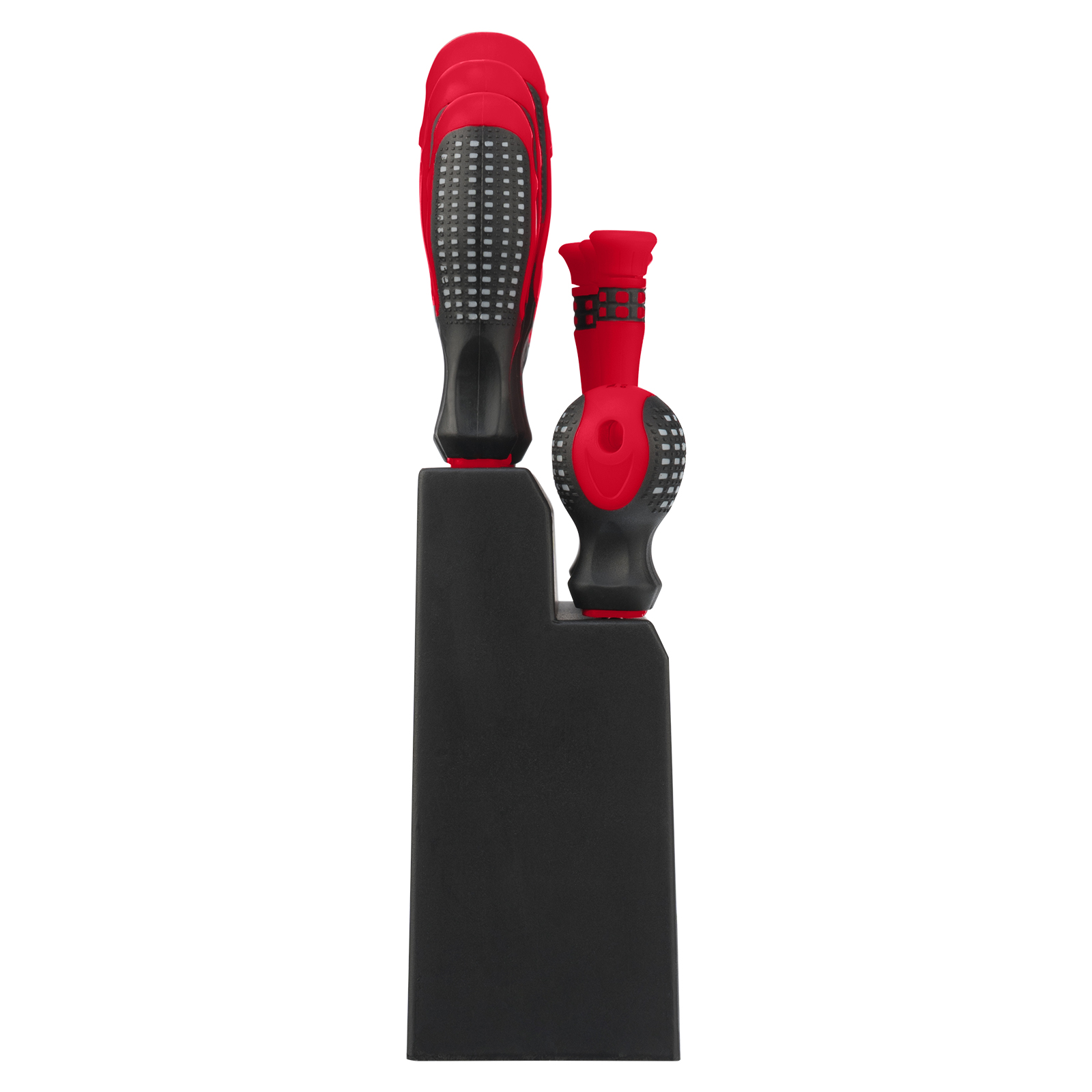 Отвертки стандартные: РН1х75 мм, РН2х38 мм, РН2х100 мм, РН3х150 мм, SL5x75 мм, SL6x38 мм, SL6x100 мм, SL8x150 мм - 8 штОтвертки для точных работ, длина стержня 40 мм: РН00, РН0, SL25, SL3, T5, T6, T7, T8, T9, T10 - 10 штПодставка для отверток - 1 шт |