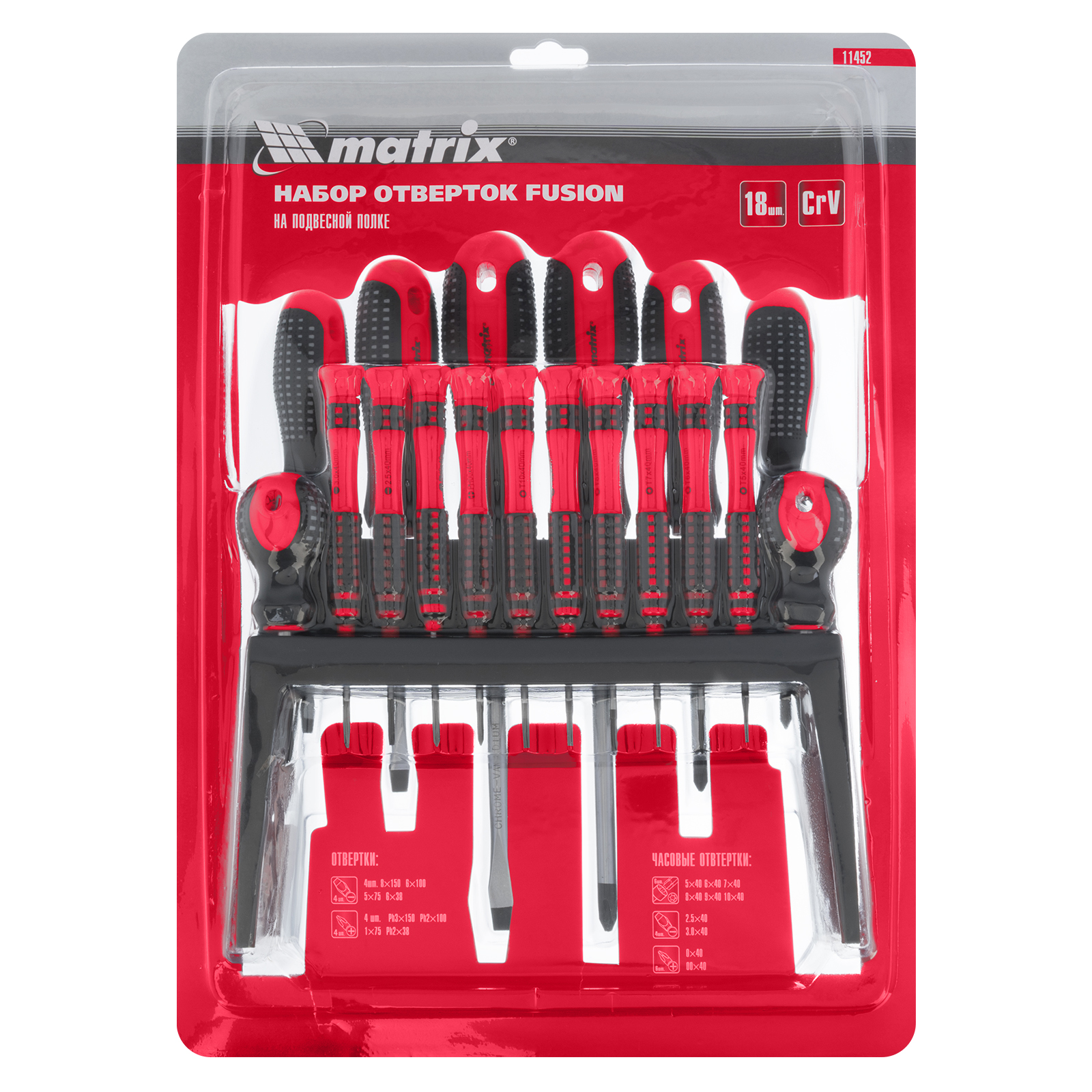 Набор отверток Fusion на подвесной полке 18 шт, CrV Matrix в Екатеринбурге