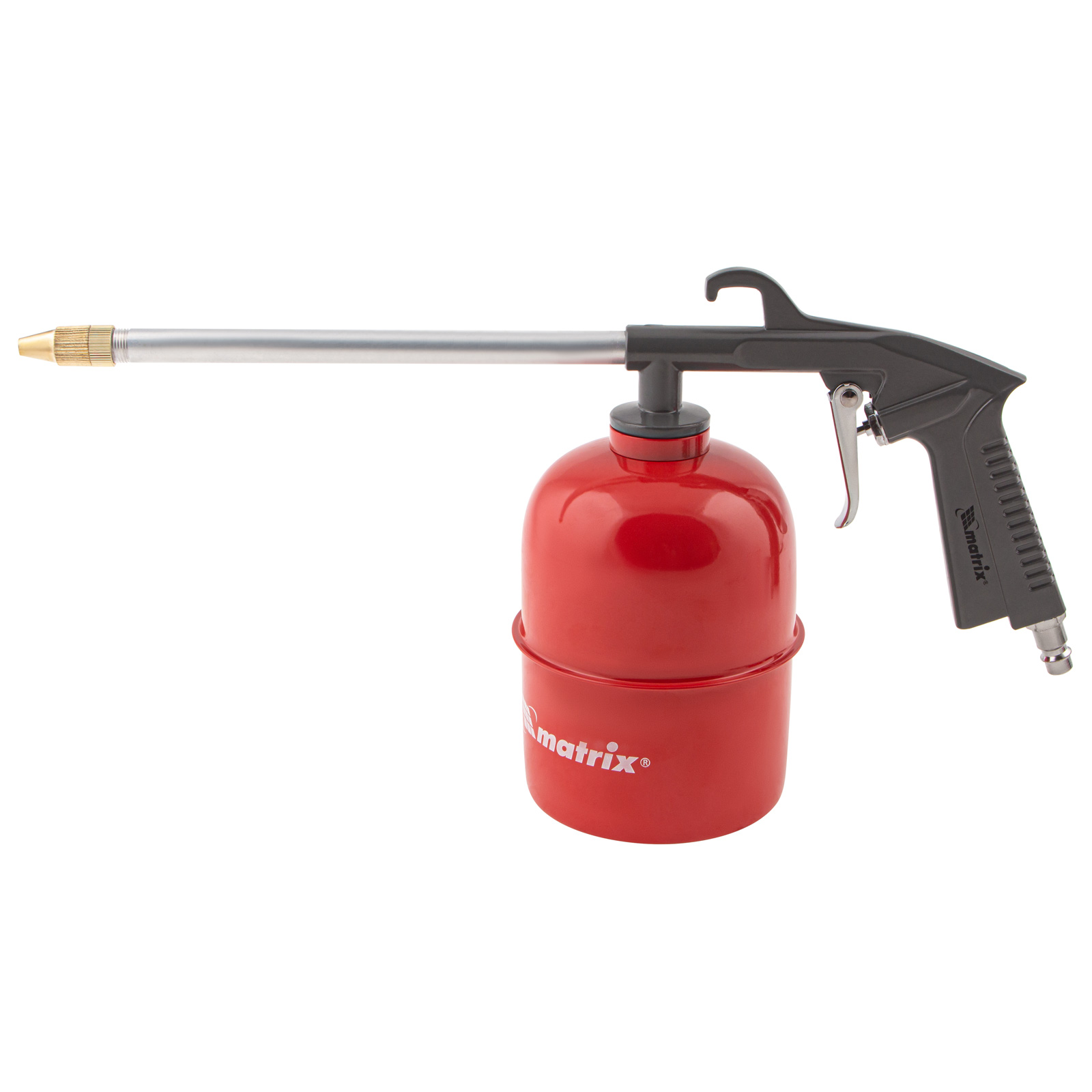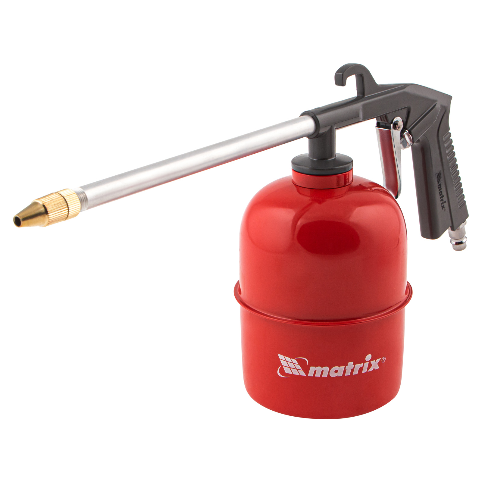 - Прочная и вместительная емкость — стальной бак промывочного пистолета объемом 0,85 л обеспечивает значительный запас жидкости.