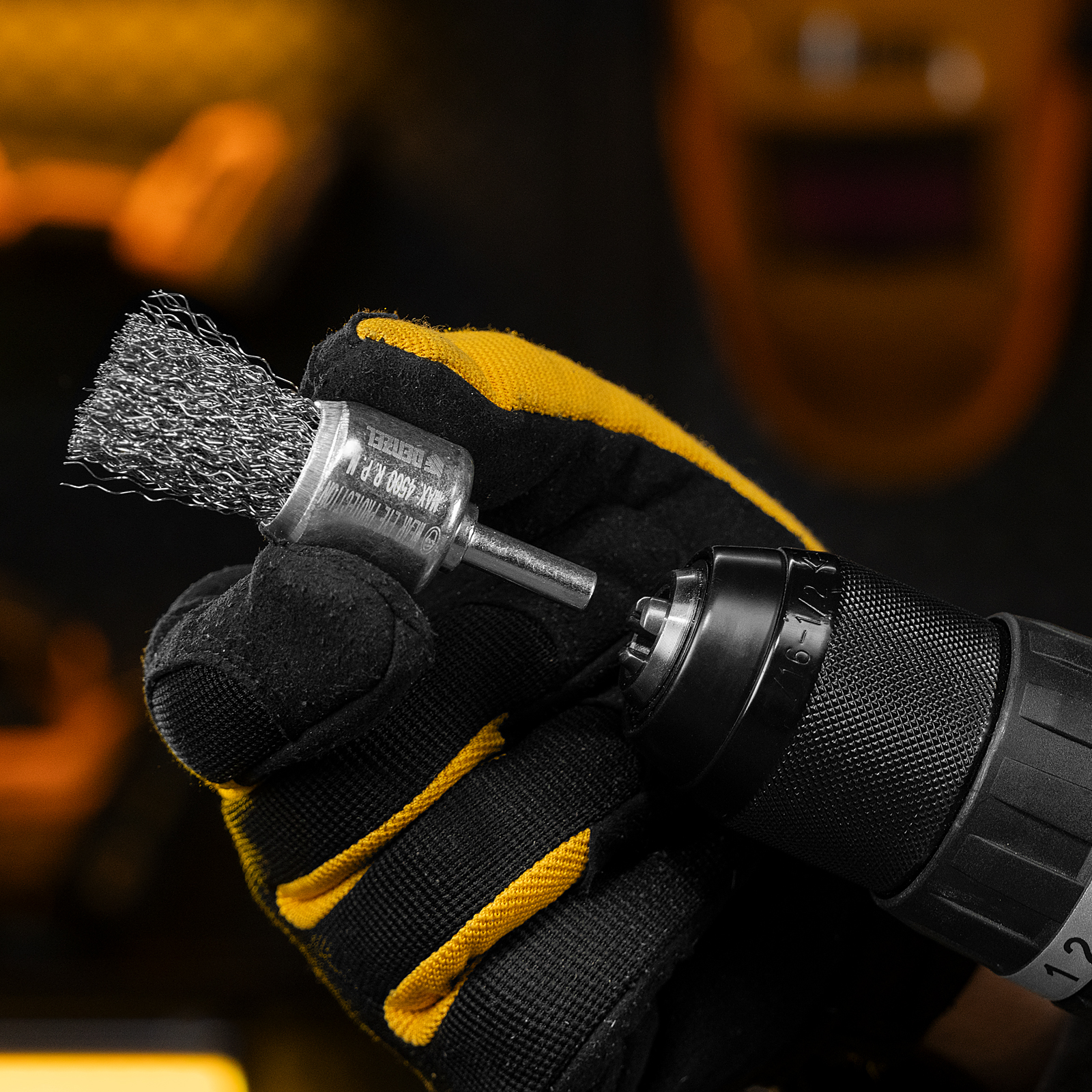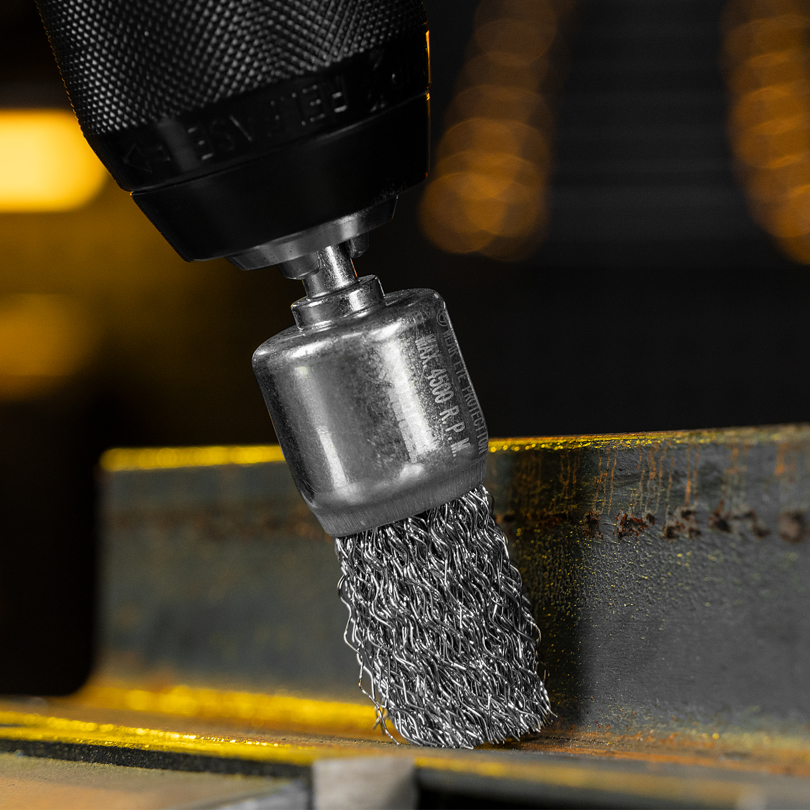 - Быстрая подготовка к работе — щетки имеют хвостовик диаметром 6 мм для установки в патрон дрели.