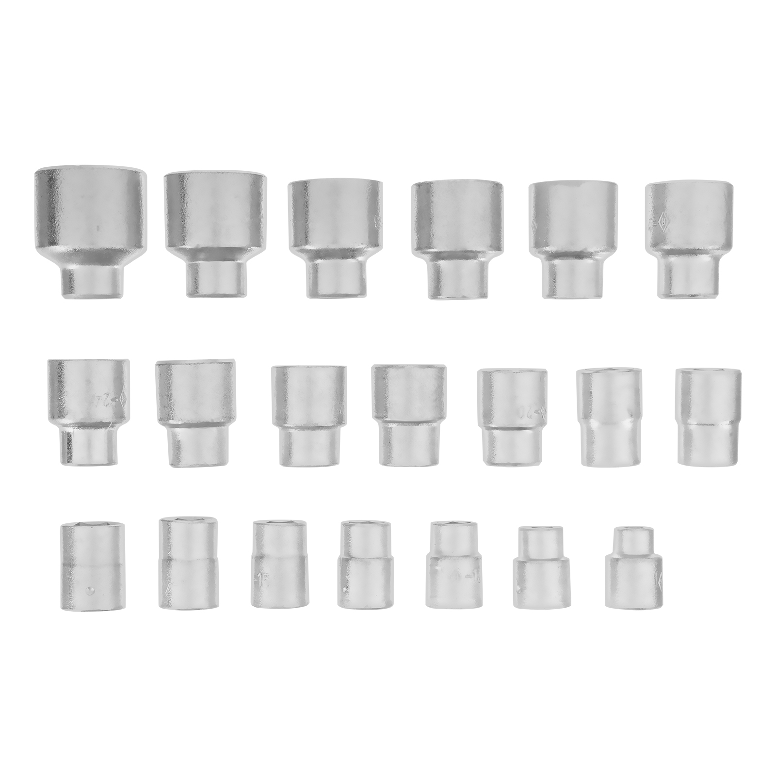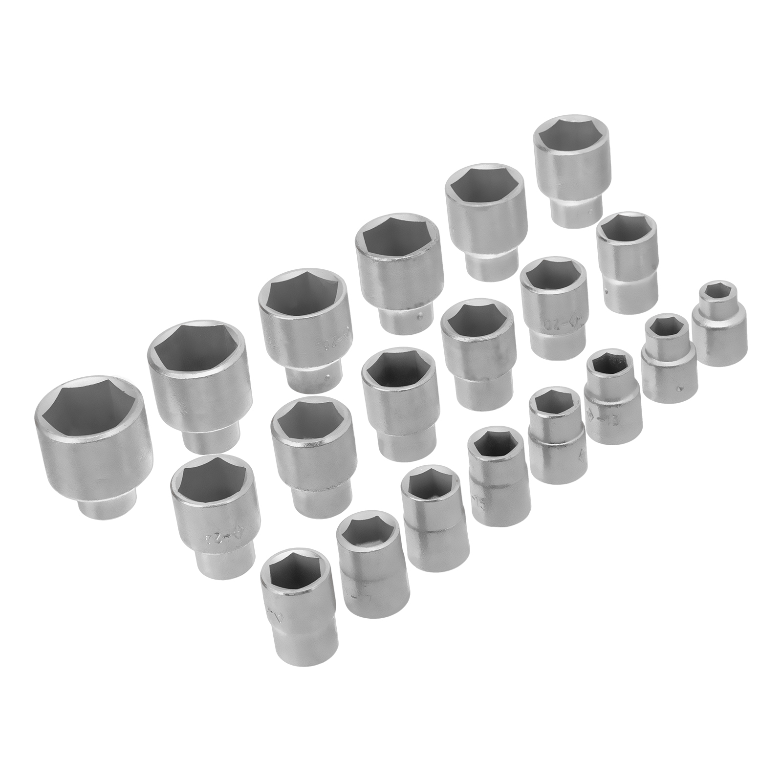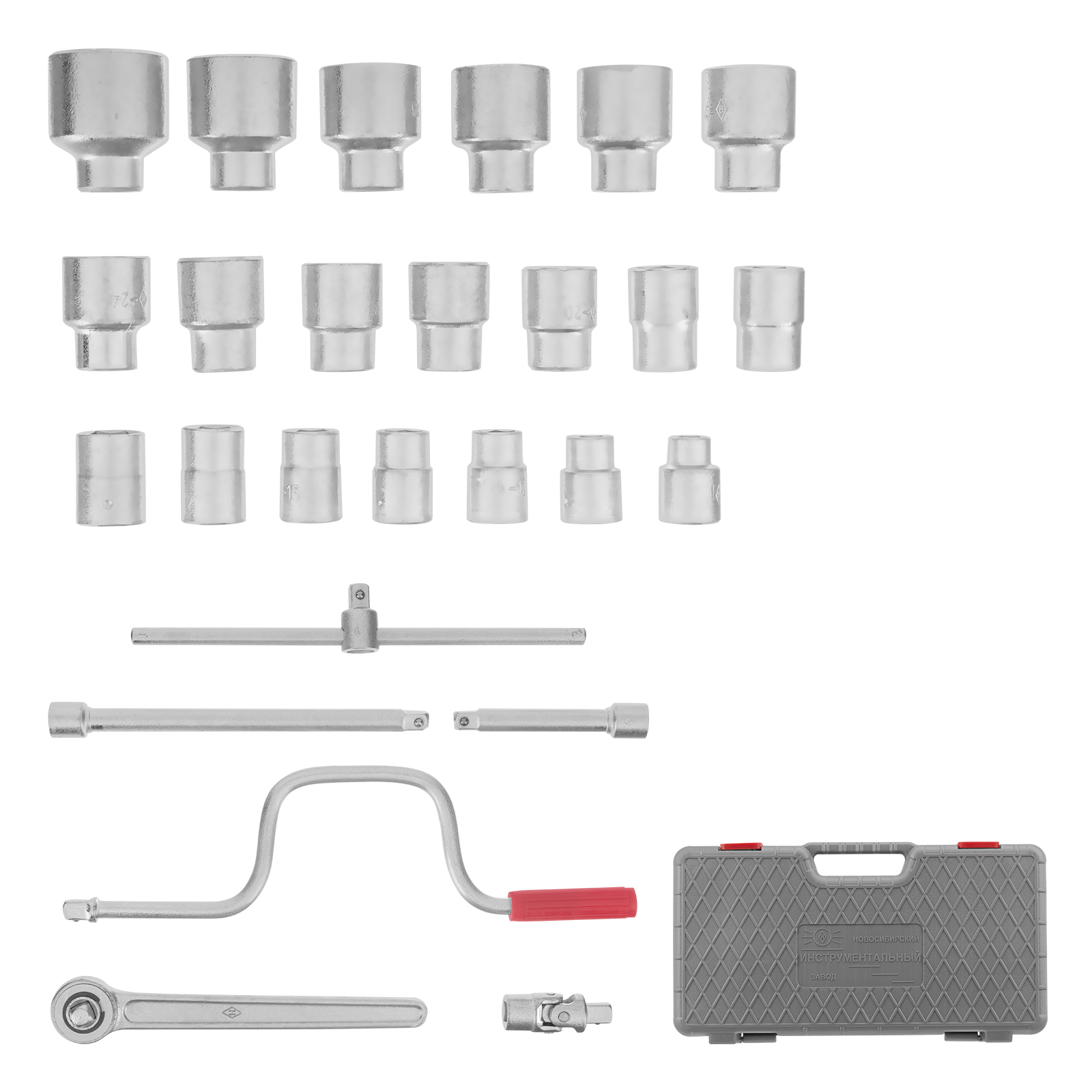 Головки 10, 11, 12, 13, 14, 15, 16, 17, 18, 19, 20, 21, 22, 23, 24, 25, 26, 27, 28, 30, 32 - 21 штКлюч трещотка - 1 штВороток Т-образный - 1 штУдлинители 125, 250 - 2 штШарнир - 1 штКоловорот - 1 штКейс - 1 штТрещотка - 1 шт |