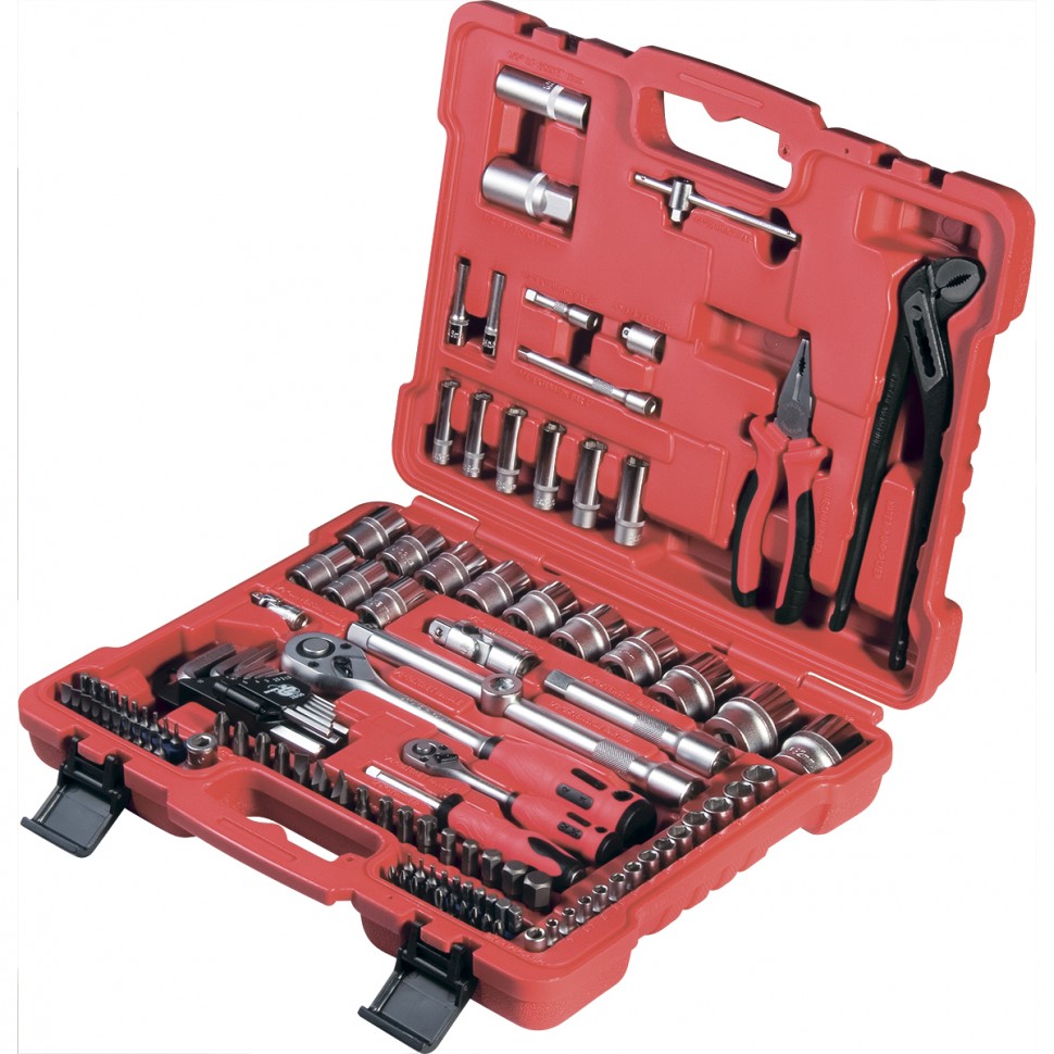 Слесарно-монтажный набор Matrix 13587 с присоединительными квадратами 1/4", 1/2" и 5/16" состоит из 117 предметов и используется для монтажа и демонтажа резьбовых соединений. Включает карданные шарниры, упрощающие работу с труднодоступным крепежом, а также пассатижи и переставные клещи для удержания деталей. Инструменты будут полезны в авторемонтной мастерской, пригодятся также и в быту.
