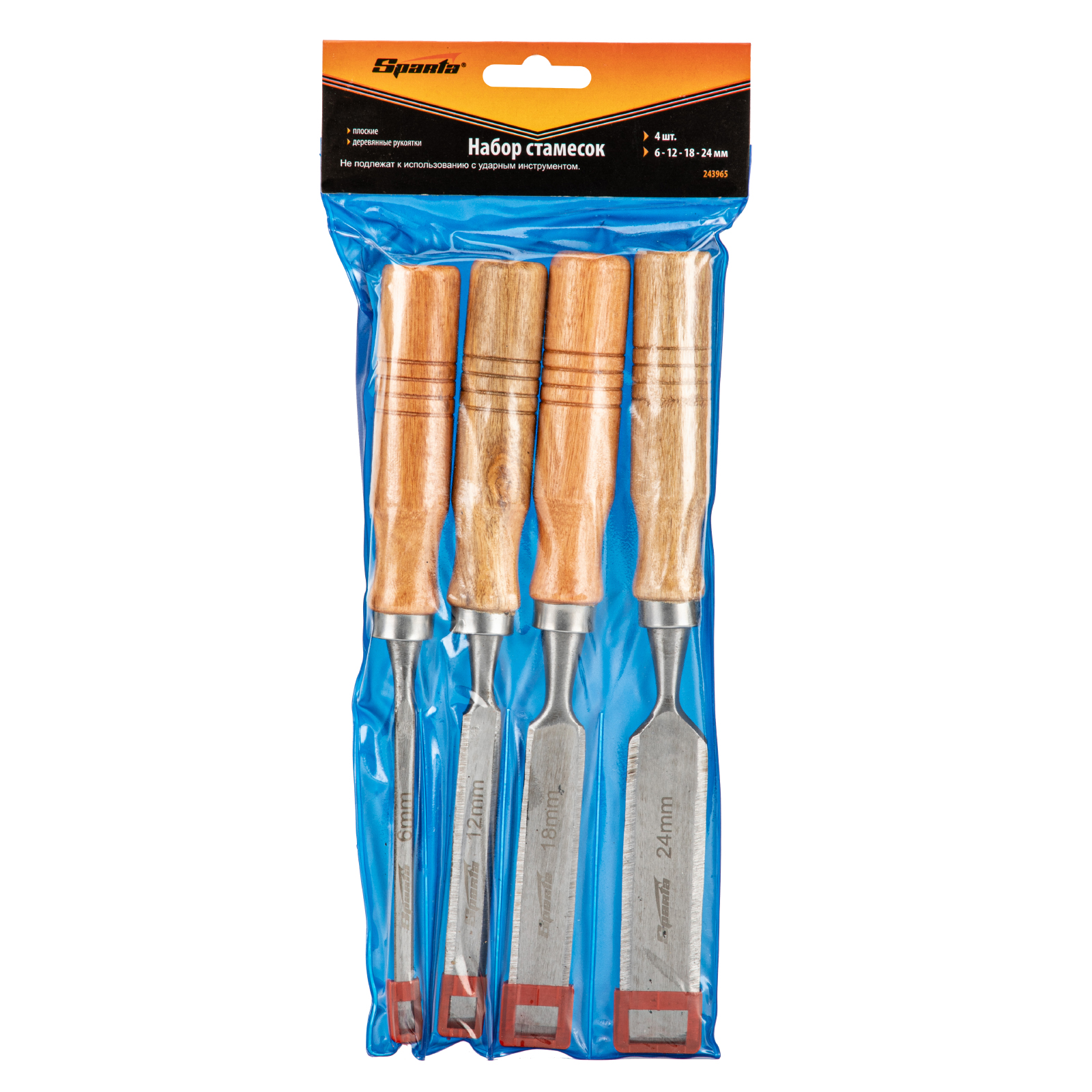 Набор стамесок, 6-12-18-24 мм, плоские, деревянные рукоятки Sparta в Екатеринбурге