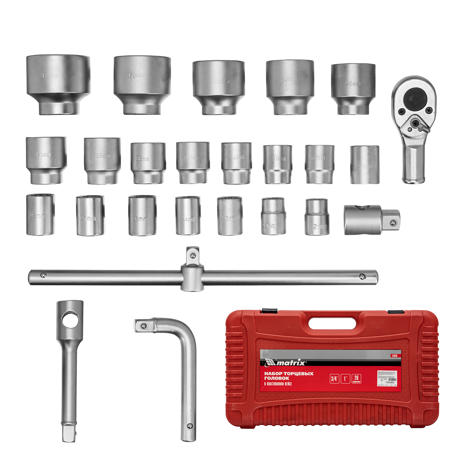 Набор торцевых головок 3/4"–1", головки 21 х 65 мм, 26 предметов, в пласт. боксе Matrix в Екатеринбурге