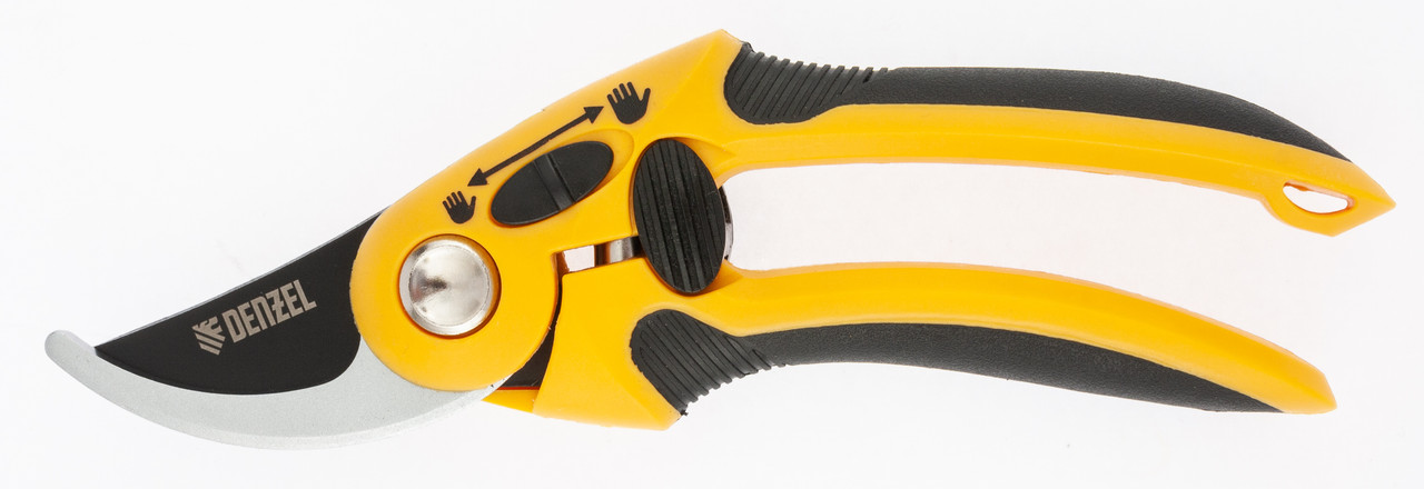 - Комфортное использование — переключатель «большая-малая рука» позволяет отрегулировать ширину захвата секатора.