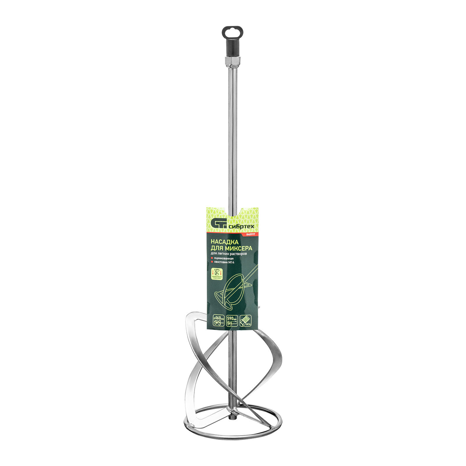 Насадка для миксера, для легких растворов, 160 х 590 мм, оцинкованная, хвостовик резьба М14 Сибртех в Екатеринбурге