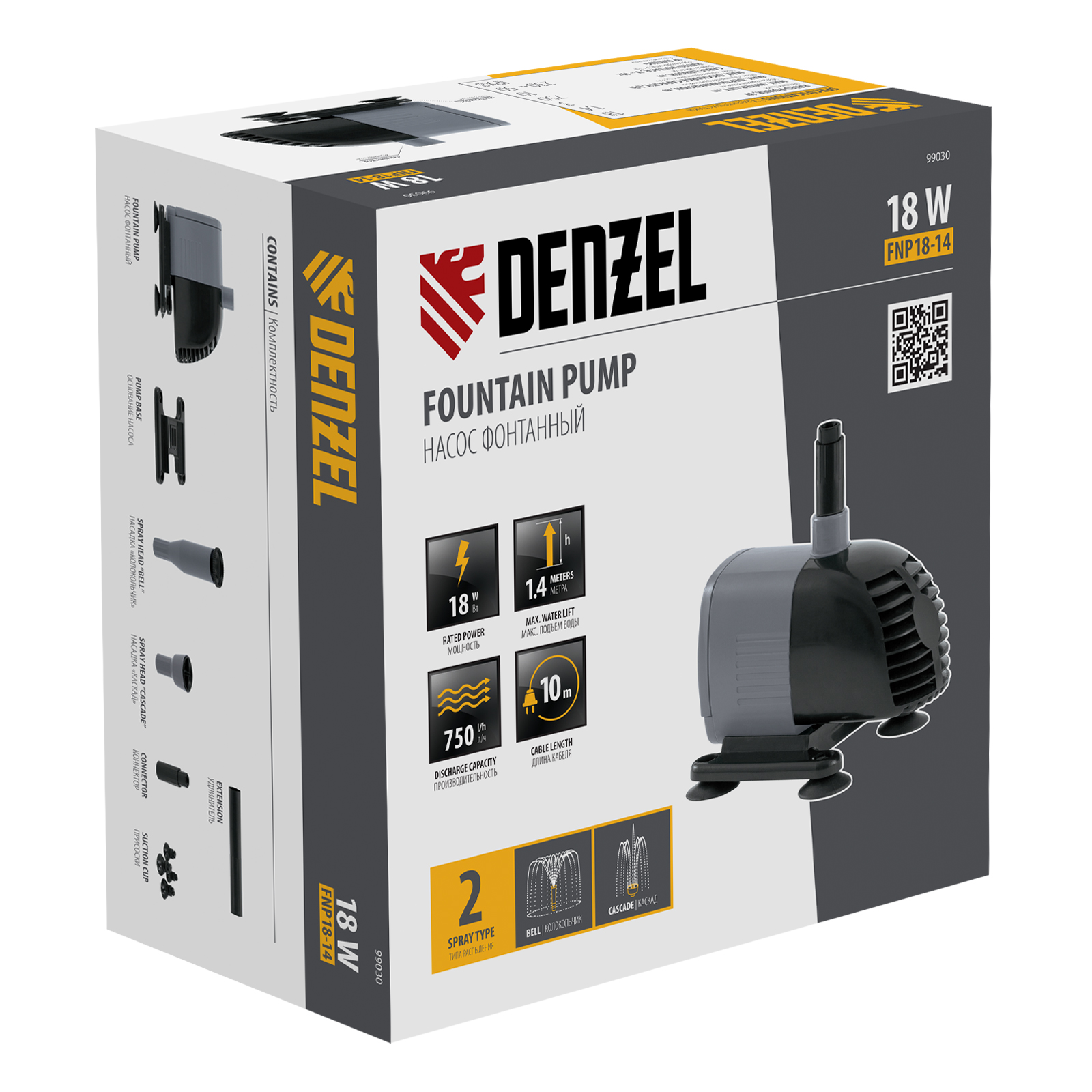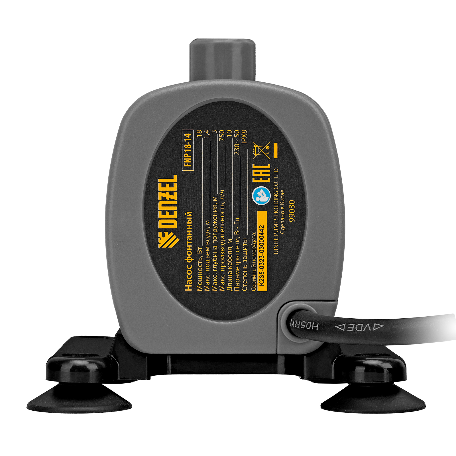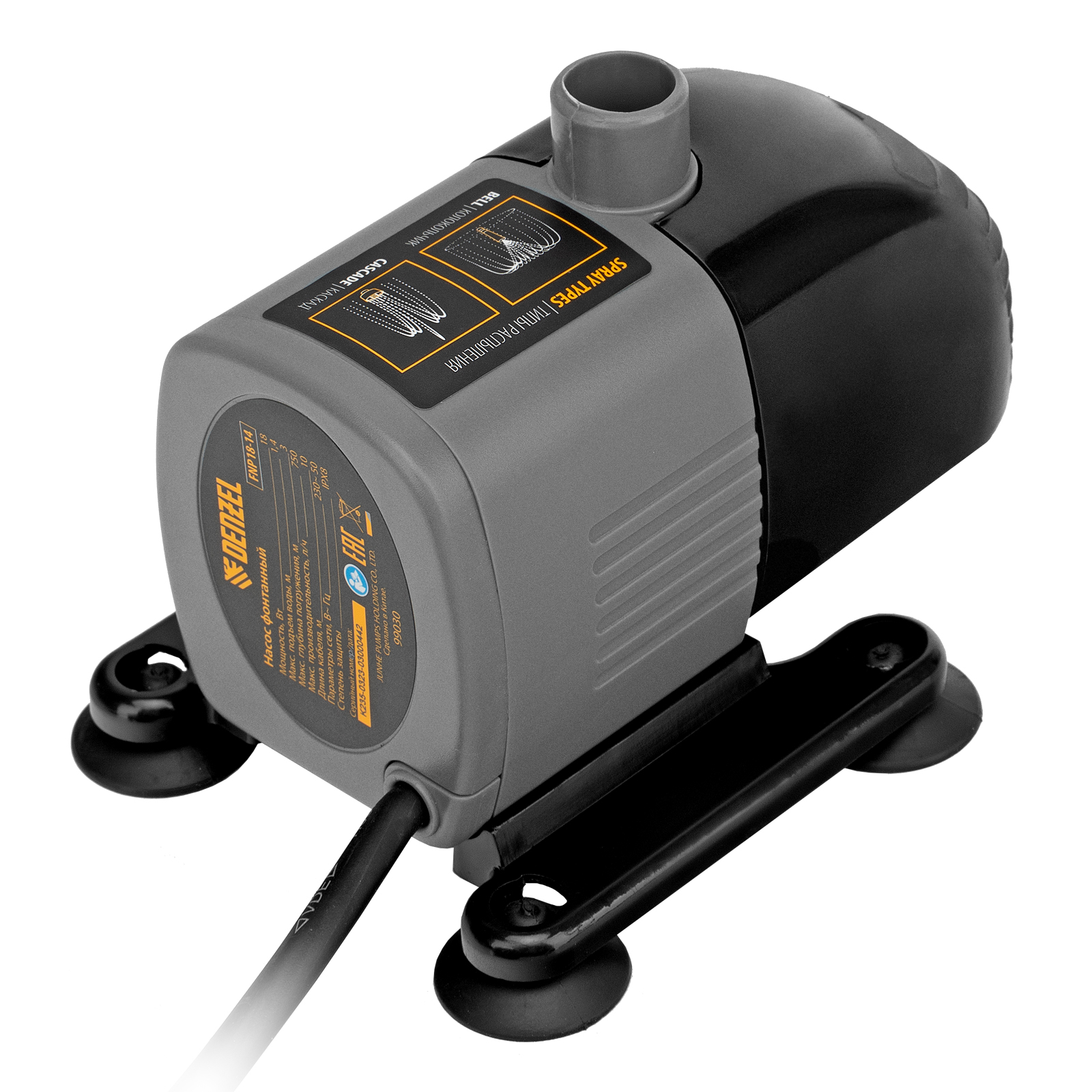 Насос фонтанный FNP18-14, 18 Вт, подъем 1,4 м, 750 л/ч, колокольчик/каскад Denzel в Екатеринбурге