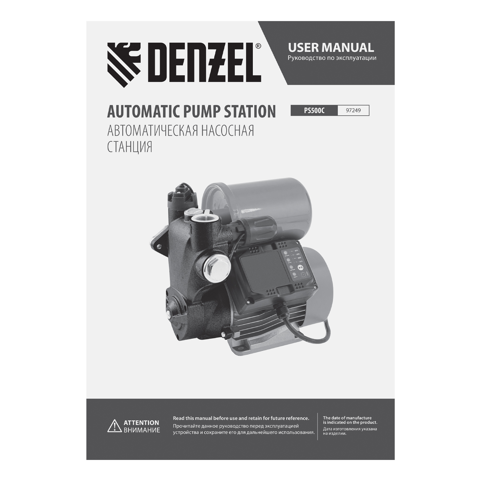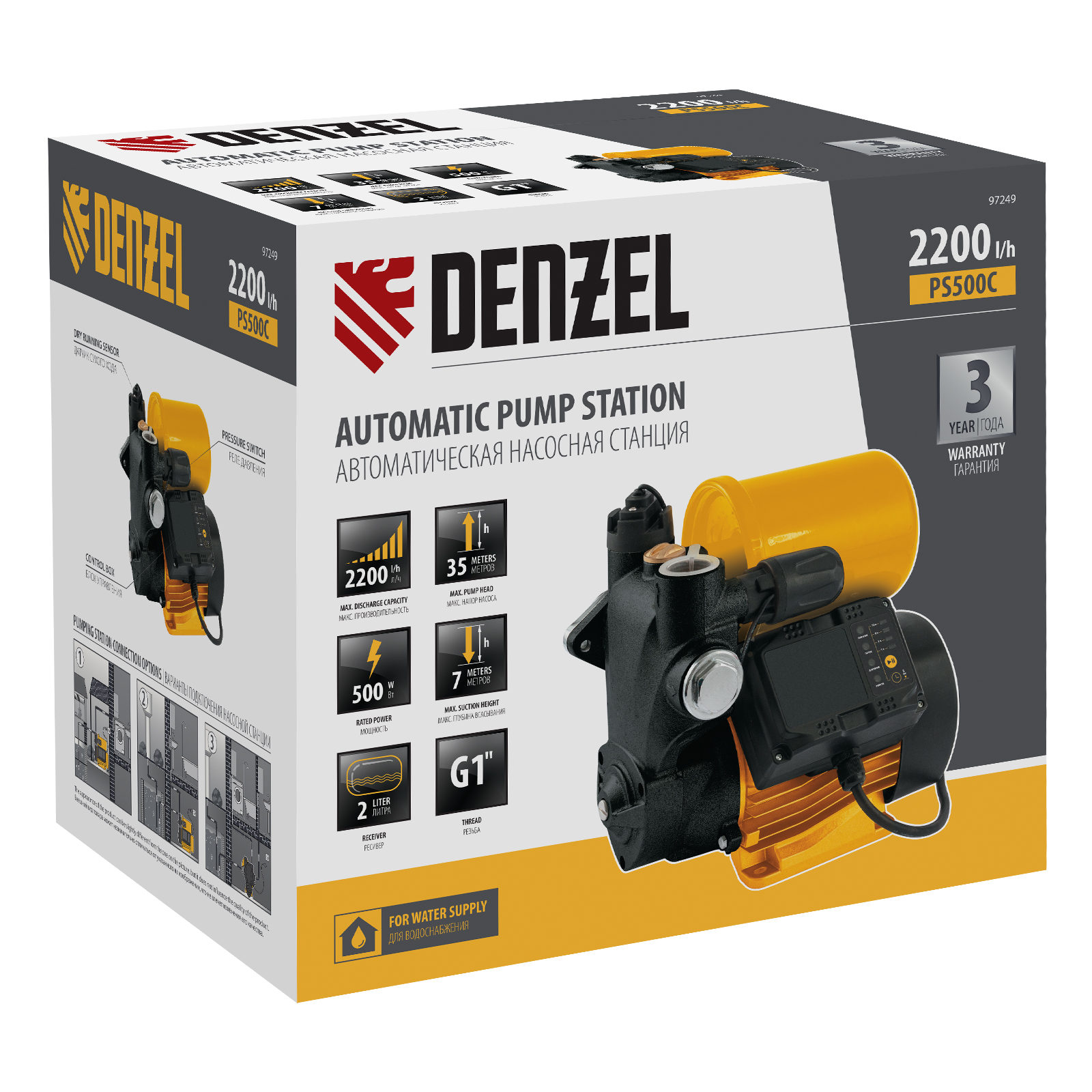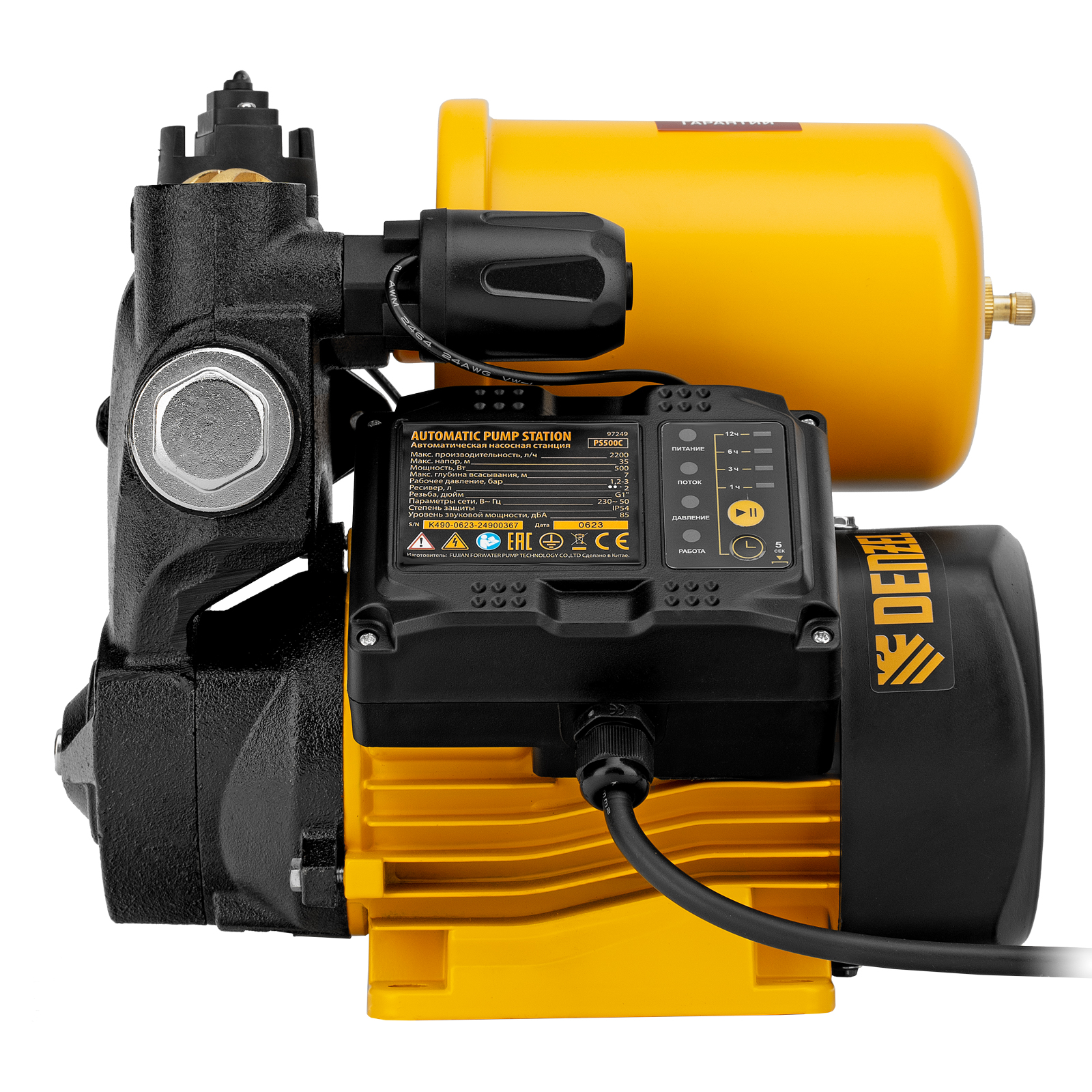 Насосная станция PS500C, 500 Вт, напор 35 м, 2200 л/ч, ресивер 2 л, блок управления Denzel в Екатеринбурге