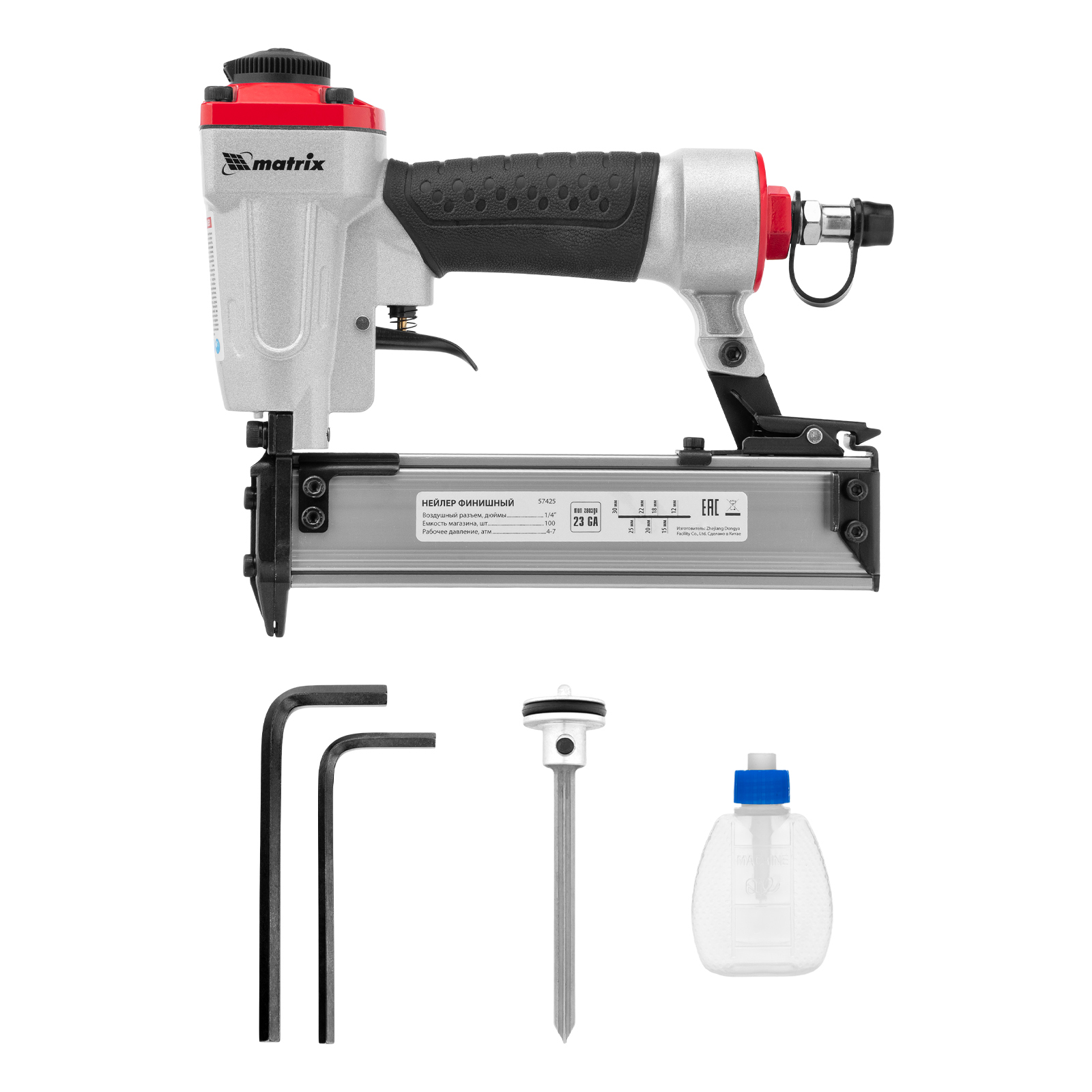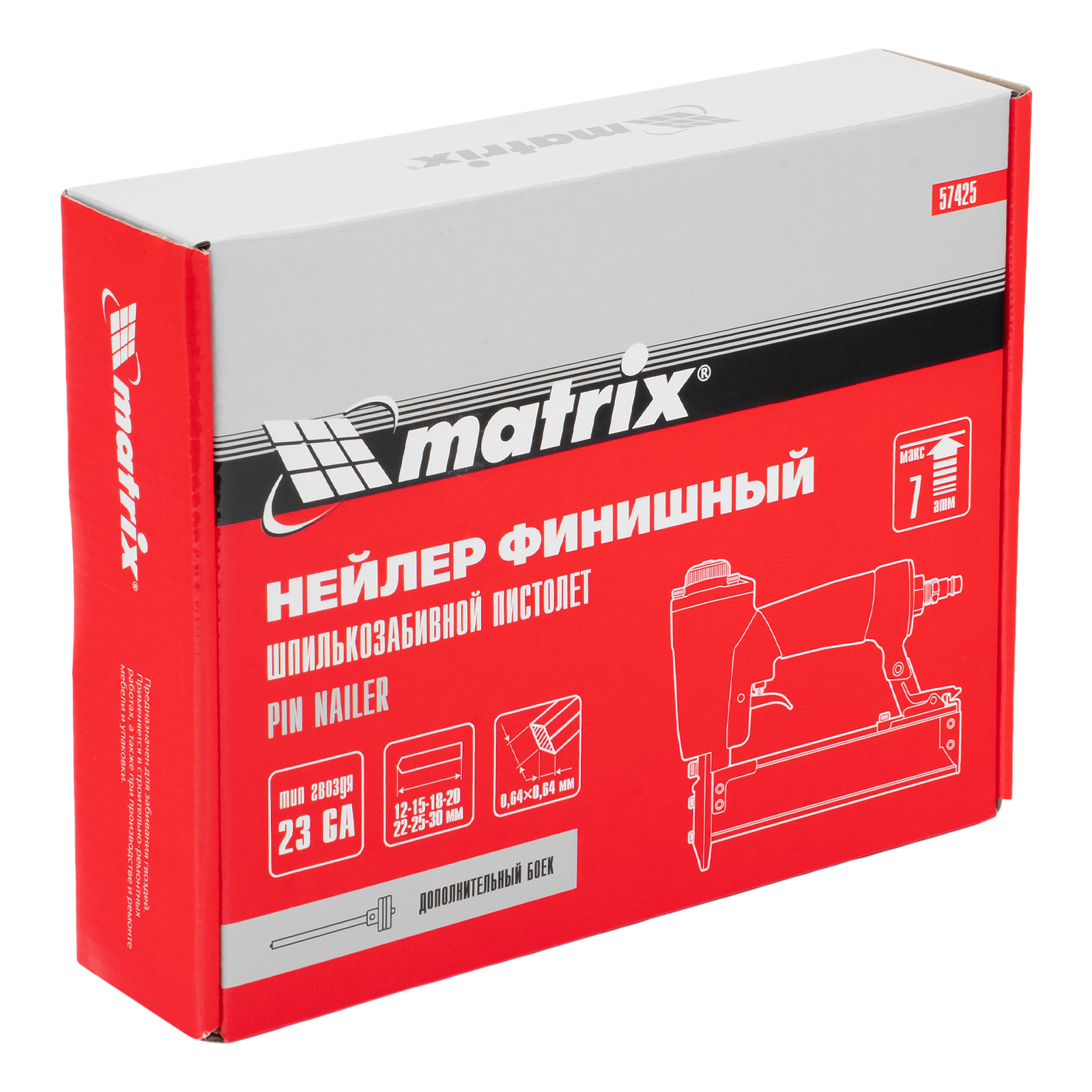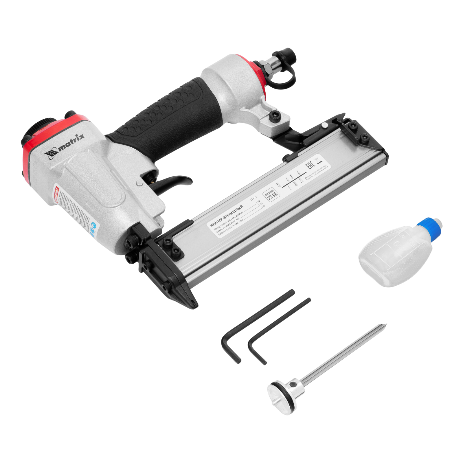 Нейлер финишный, шпилькозабивной пистолет, пневматический, гвоздь 23GA D 0.64 мм длина 10-30 мм Matrix в Екатеринбурге