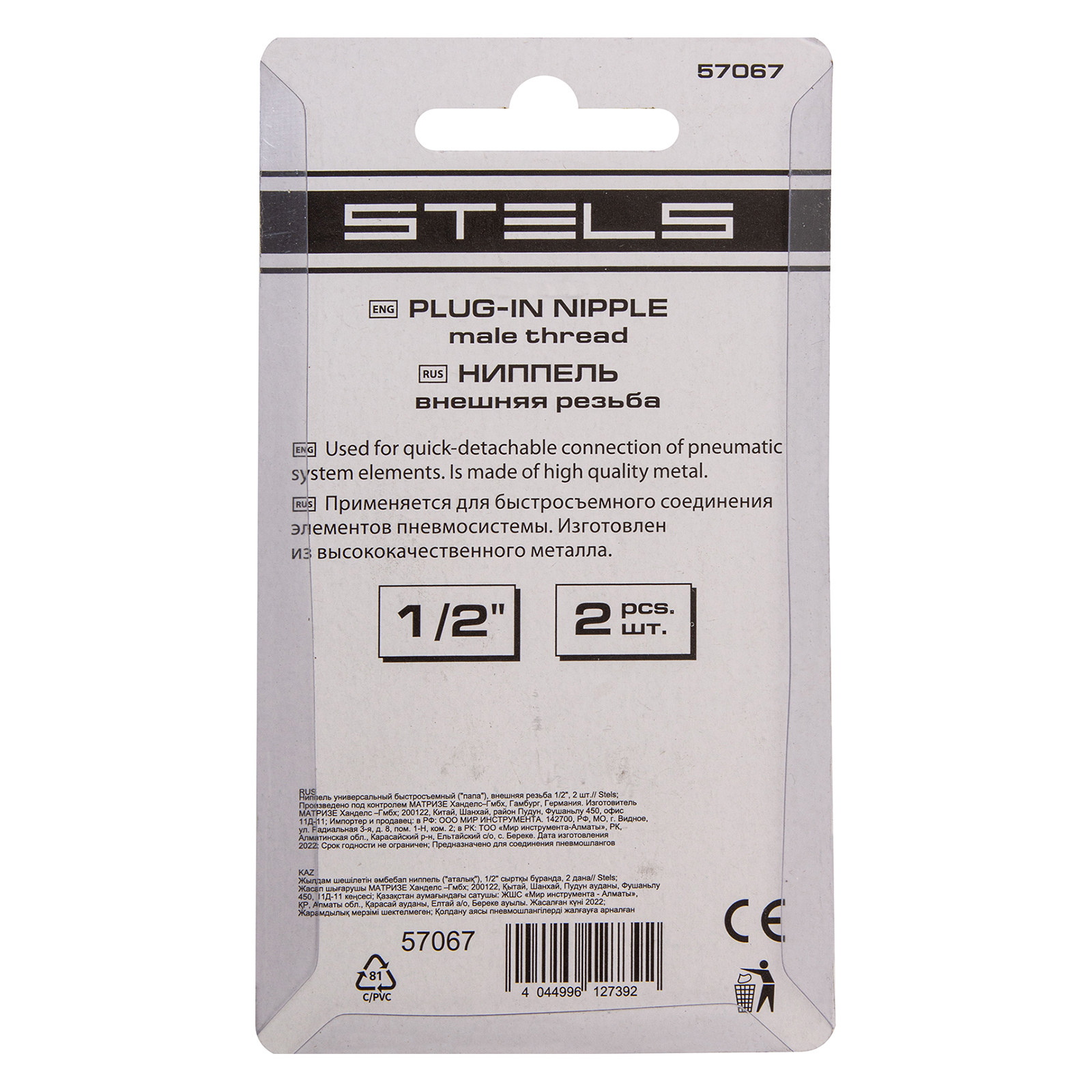 Ниппель универсальный быстросъемный ("папа") внешняя резьба 1/2, 2 шт, Stels в Екатеринбурге