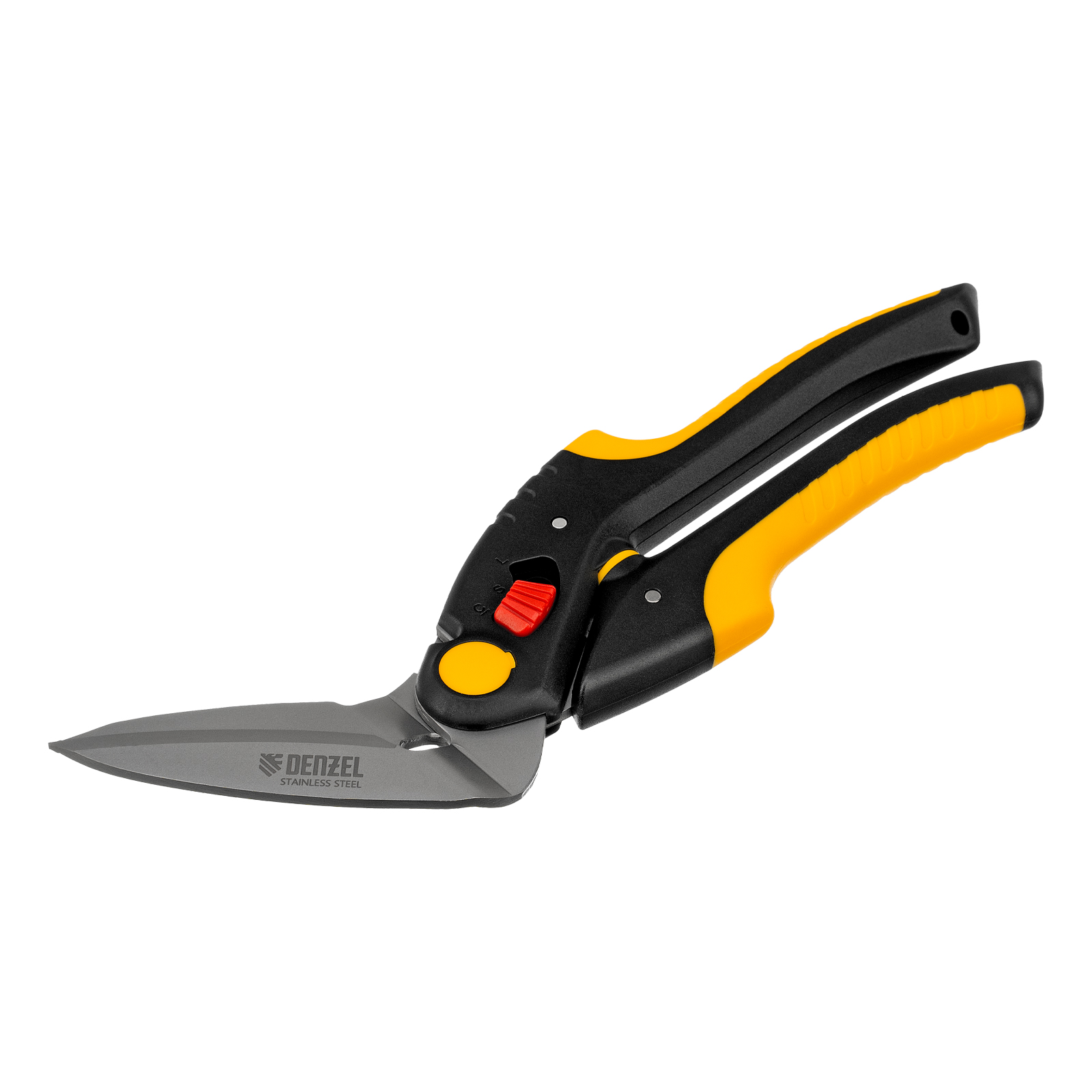 - Безопасность — фиксатор удерживает рукоятки в нерабочем положении, поэтому ножницы не раскроются при хранении или транспортировке.