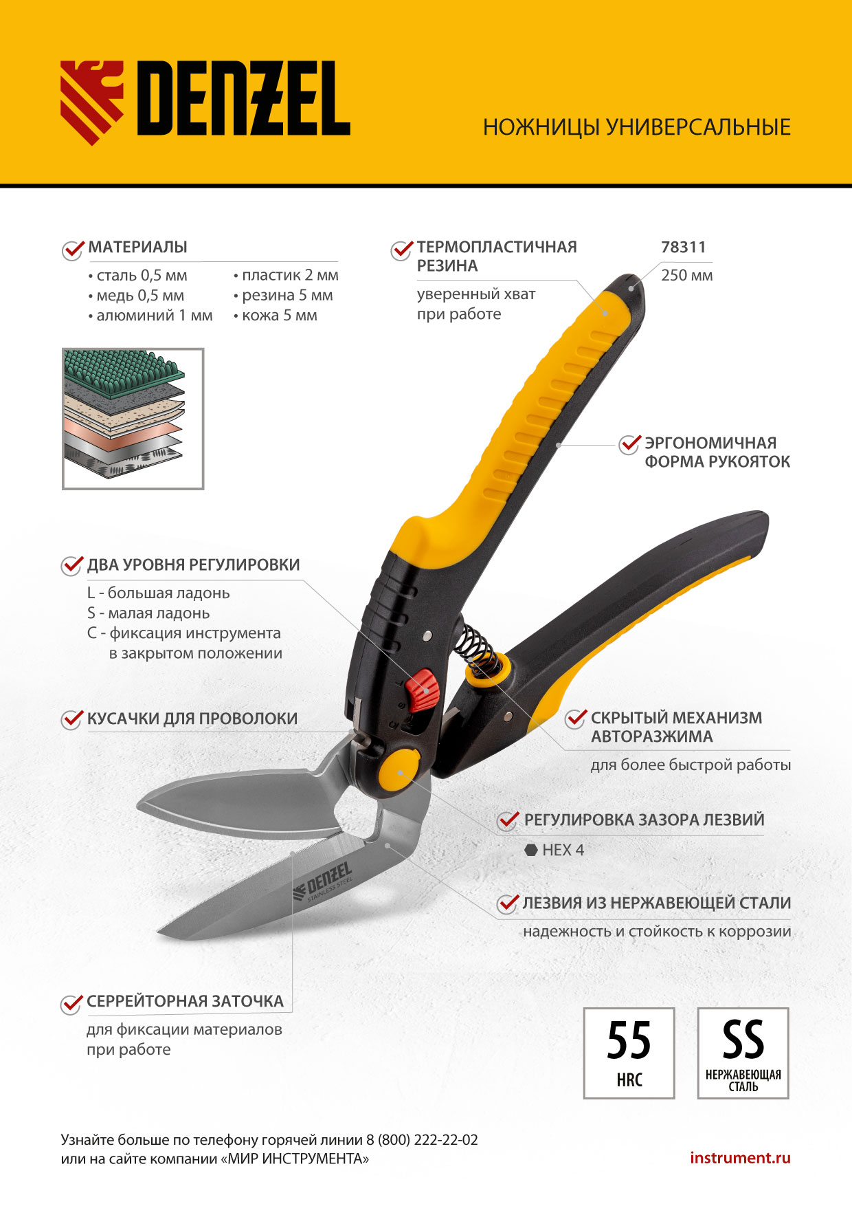 Ножницы для напольных покрытий, 250 мм, нержавеющая сталь, функция перерезания Denzel в Екатеринбурге