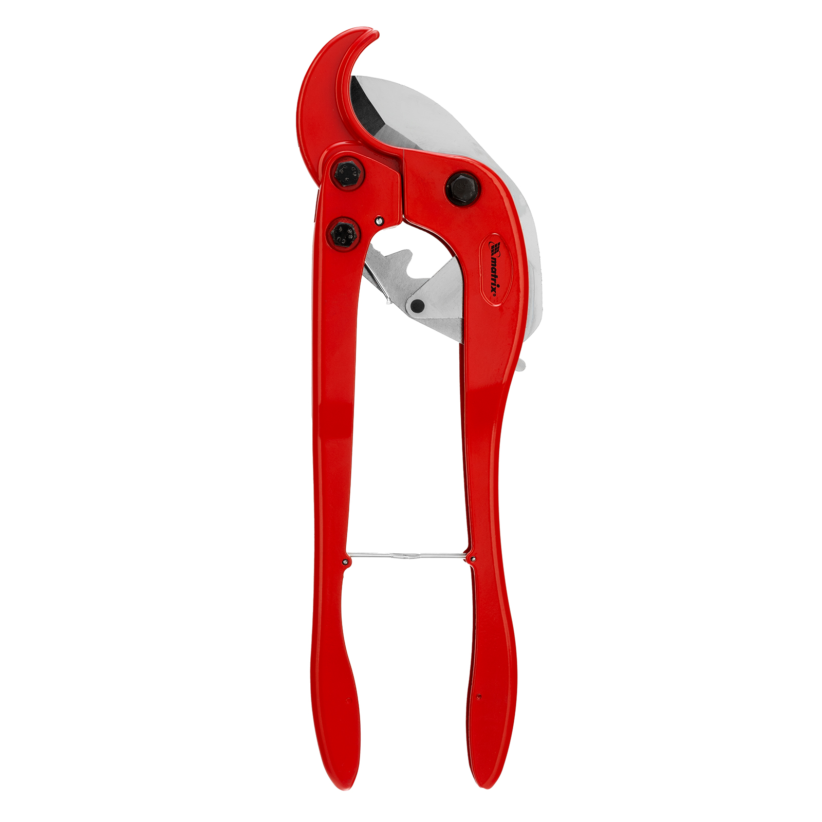 Универсальные ножницы Matrix 78418 с порошковым покрытием рукояток используются для резки изделий из ПВХ диаметром до 63 мм — труб, плинтусов, профилей. Подойдут также для разрезания резиновых шлангов и других заготовок. Ножницы успешно справляются с крупными предметами благодаря удлиненным рукояткам, увеличивающим передаваемое усилие. Инструмент пригодится сантехникам и мастерам-отделочникам.