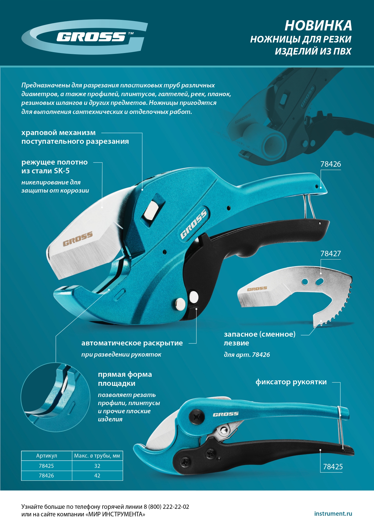 Ножницы для резки изделий из ПВХ, универсальные, D-42 мм, автомат Gross в Екатеринбурге