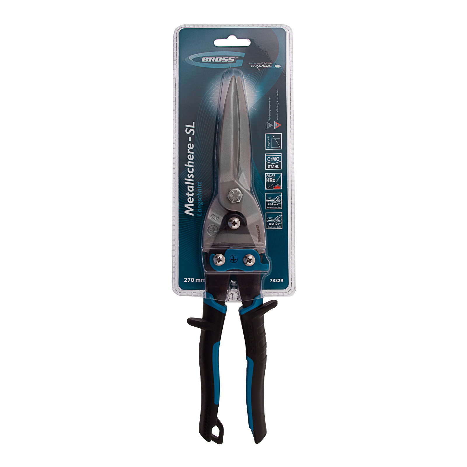 Ножницы по металлу Gross PIRANHA 78329 длиной 270 мм, из стали CrMo, с двухкомпонентными рукоятками, используются для прямого проходного реза плоских заготовок. Обеспечивают точный рез, справляются с холоднокатаной сталью толщиной до 0,94 мм и «нержавейкой» толщиной до 0,53 мм. Двойной рычажный механизм снижает нагрузку на руку мастера при резке твердых материалов. Ножницы предназначены для профессиональных слесарных работ, пригодятся также и в быту.