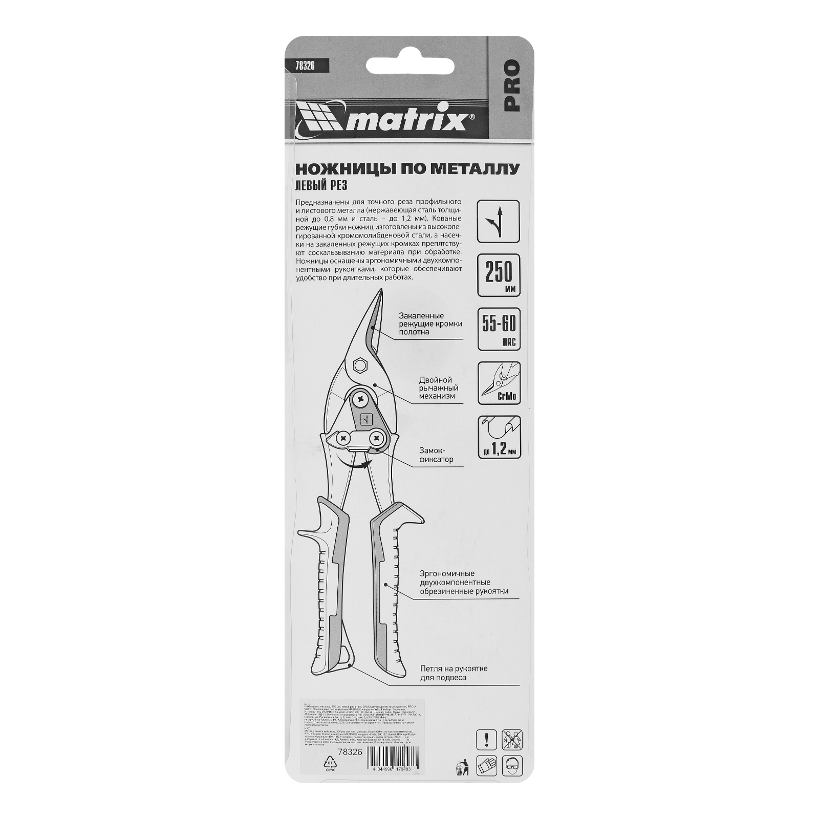 Ножницы по металлу, 250 мм, левый рез, сталь CRMO, двухкомпонентные рукоятки, PRO Matrix в Екатеринбурге