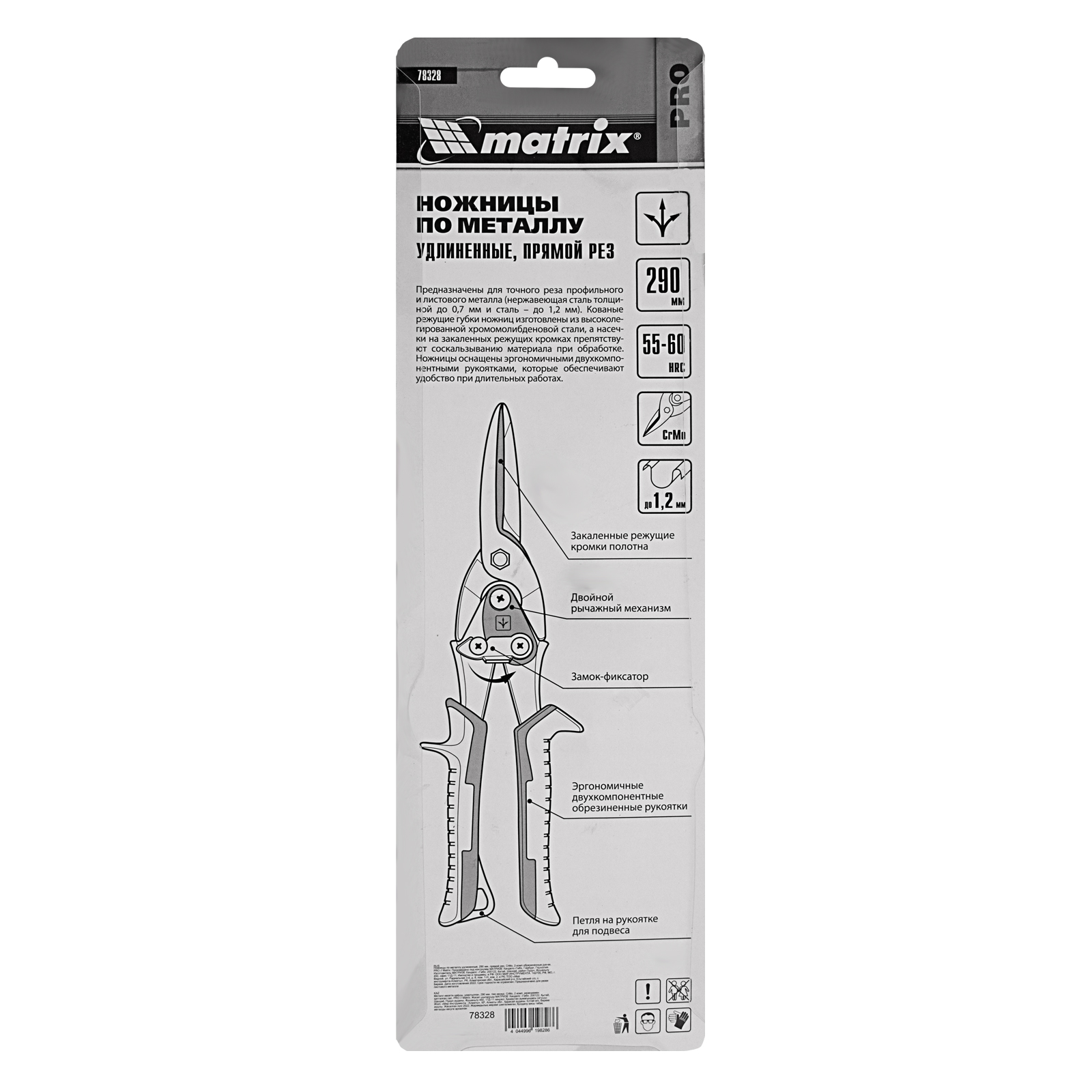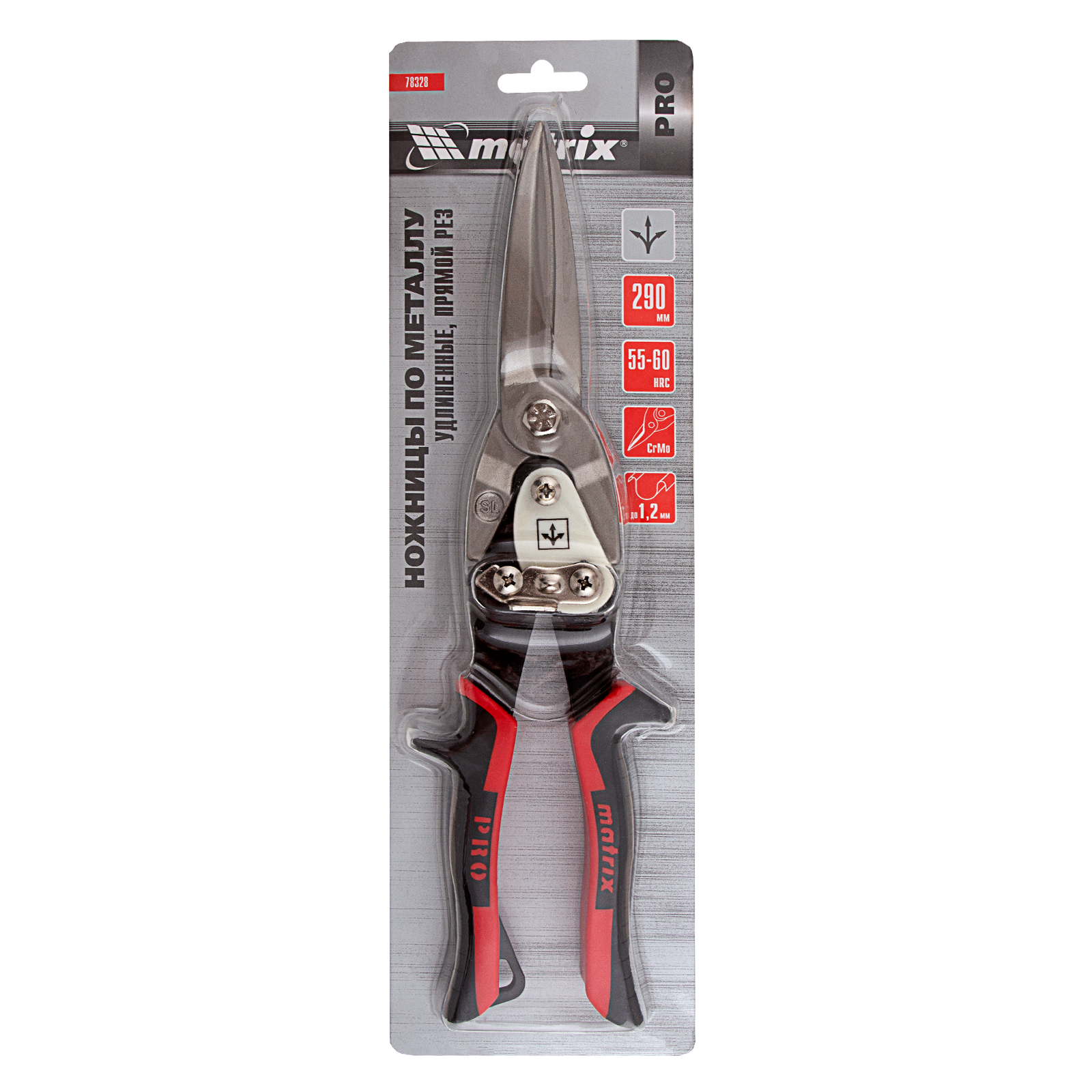 Ножницы по металлу, удлиненные, 290 мм, прямой рез, CrMo, двухкомпонентные обрезиненные рукоятки, PRO Matrix в Екатеринбурге
