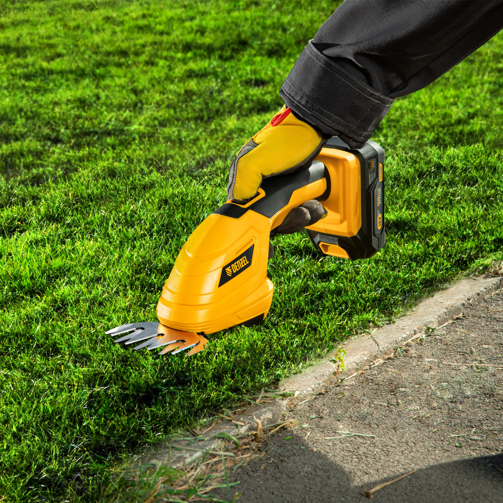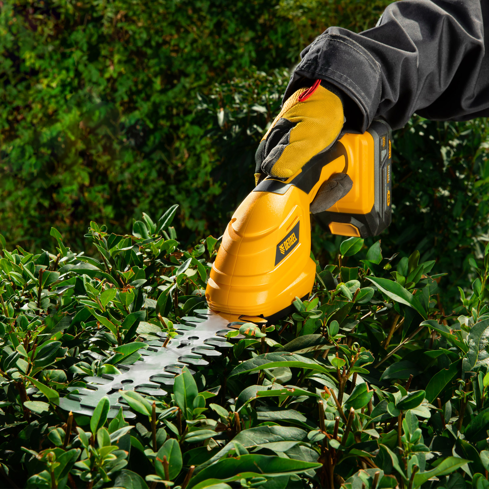 Аккумуляторные ножницы-кусторез Denzel CGS-100 59430 с батареей 18В Li-Ion предназначены для срезания травы, стрижки кустарников, листвы и тонких побегов деревьев диаметром до 8 мм. Инструмент оптимален для создания живой изгороди на дачном участке, создания ландшафтных скульптур из декоративных растений, подравнивания растительности вдоль заборов и бордюров.,Ножницы-кусторез не зависят от сети электропитания, а значит, использовать их можно в отдаленных участках сада. Аккумулятор Denzel 18В Li-Ion с интеллектуальной системой распознавания нагрузки обеспечивает стабильную работу инструмента со скоростью 1200 ход/мин и эффективное выполнение поставленных задач.