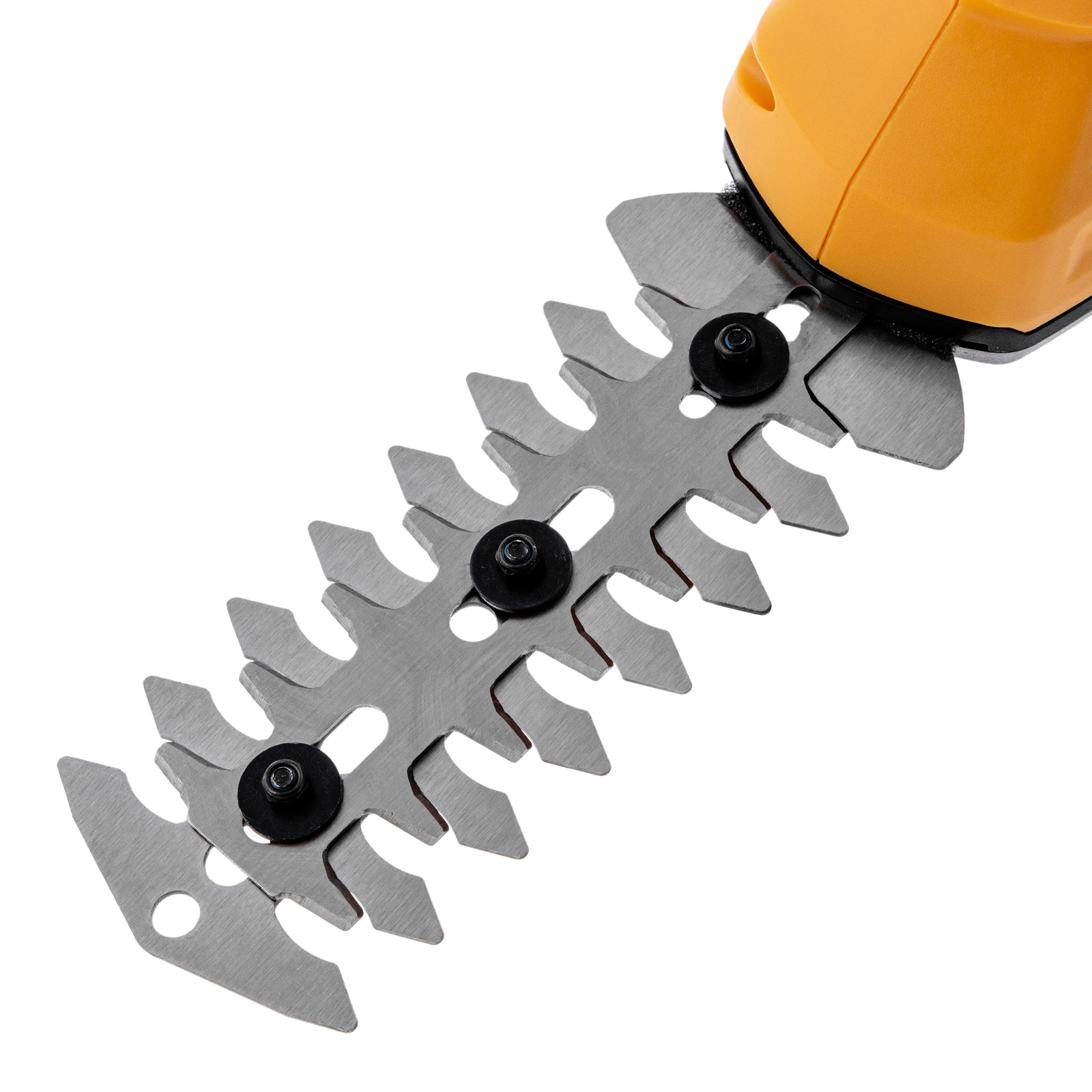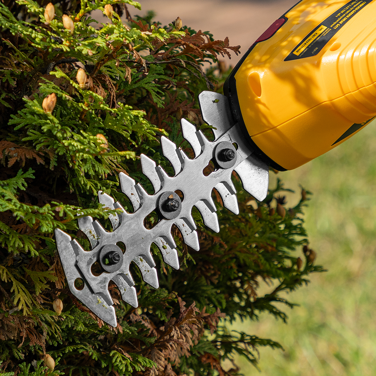 Аккумуляторные ножницы-кусторез Denzel G411 96817 с Li-Ion батареей напряжением 3,6 В и емкостью 1,5 Ач предназначены для поддержания декоративной растительности на дачном участке в аккуратном виде. В комплект входят две оснастки: для подрезания газонной травы и для обрезки кустов и тонких веток деревьев. Благодаря простому управлению и малому весу 0,6 кг с ножницами-кусторезами легко справятся даже пожилые люди.