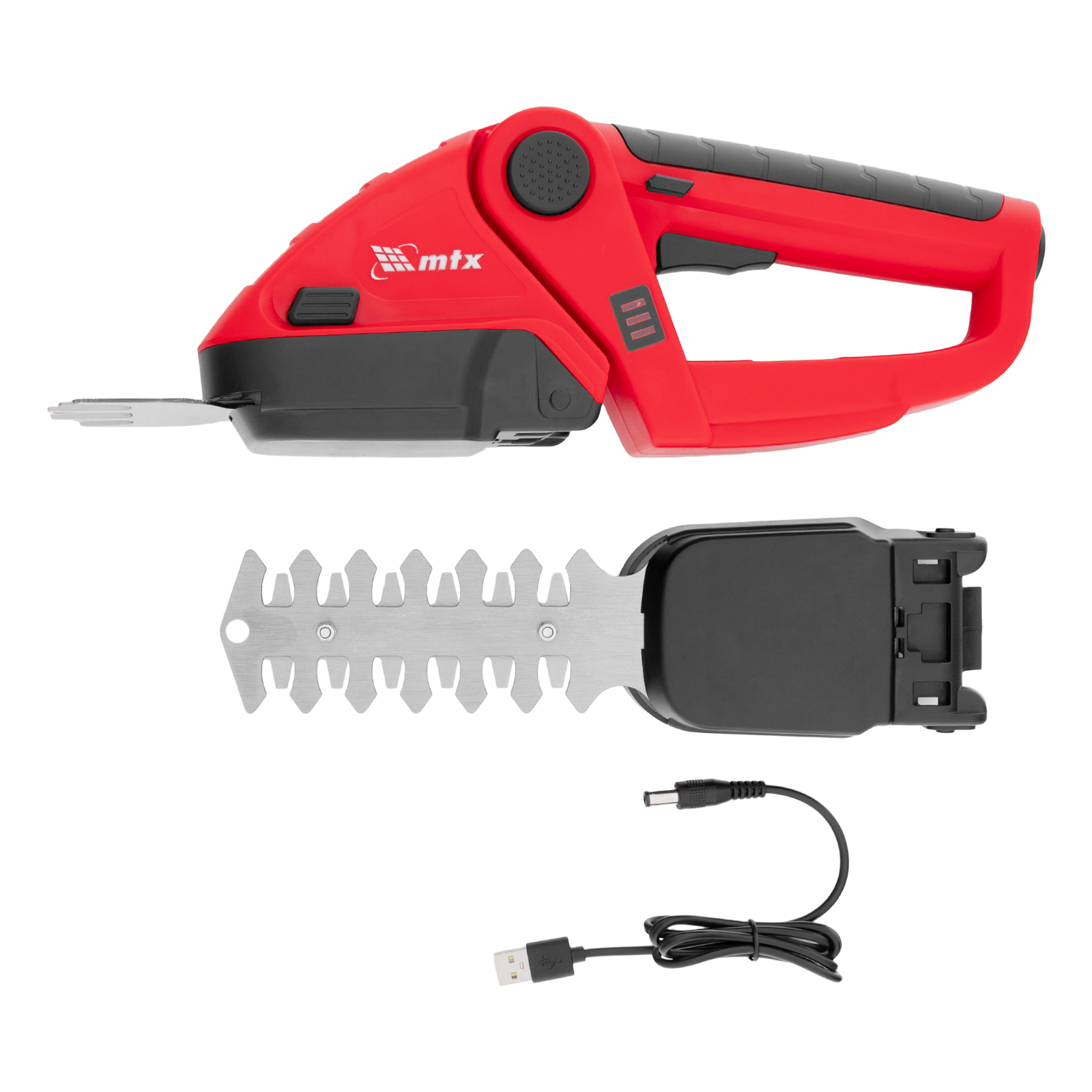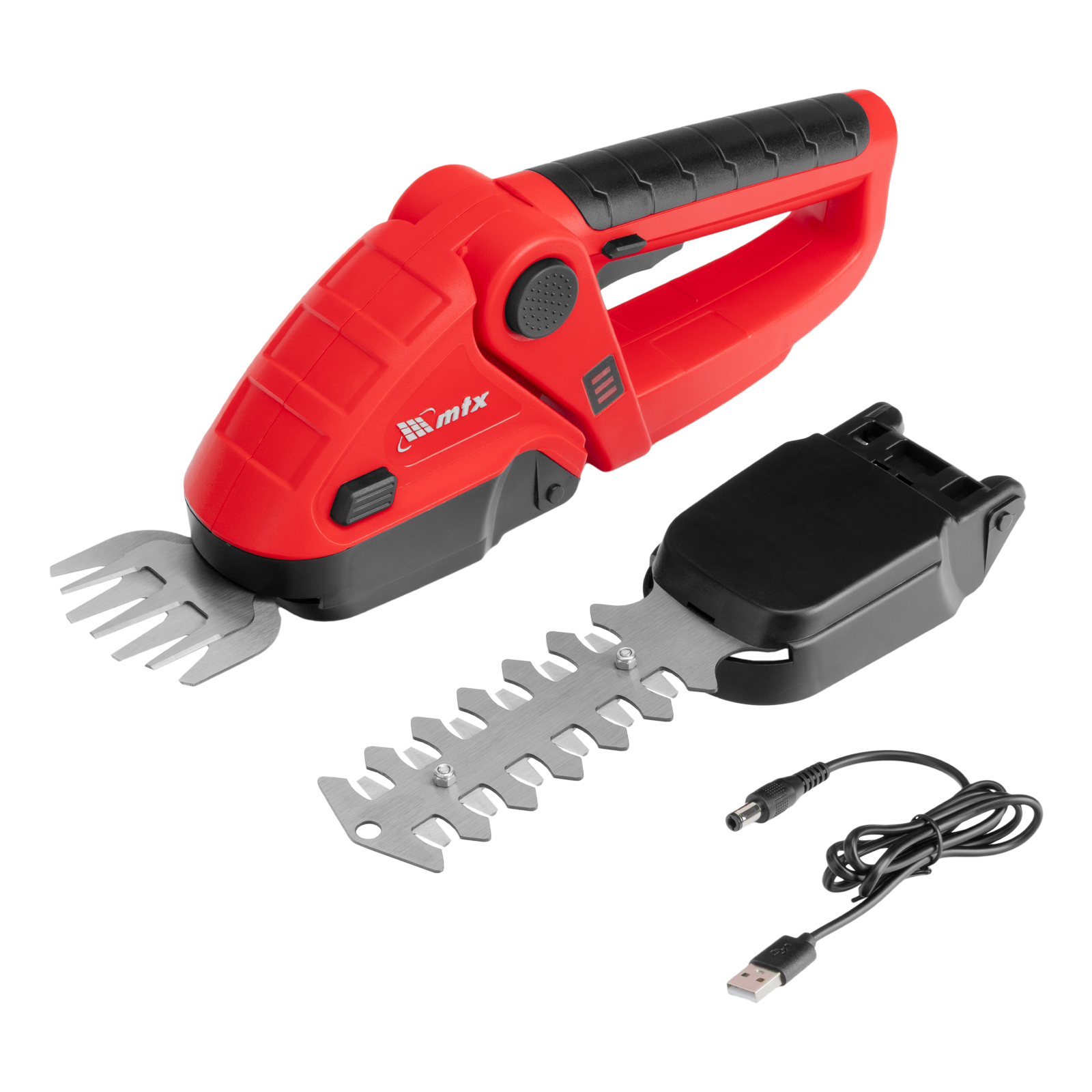 Ножницы-кусторез аккумуляторные - 1 штЛезвия для травы - 1 штЛезвия для кустарников - 1 штUSB-кабель - 1 штРуководство по эксплуатации c гарантийным талоном - 1 штМодуль для подстригания травы - 1 штМодуль для ухода за кустами - 1 шт |