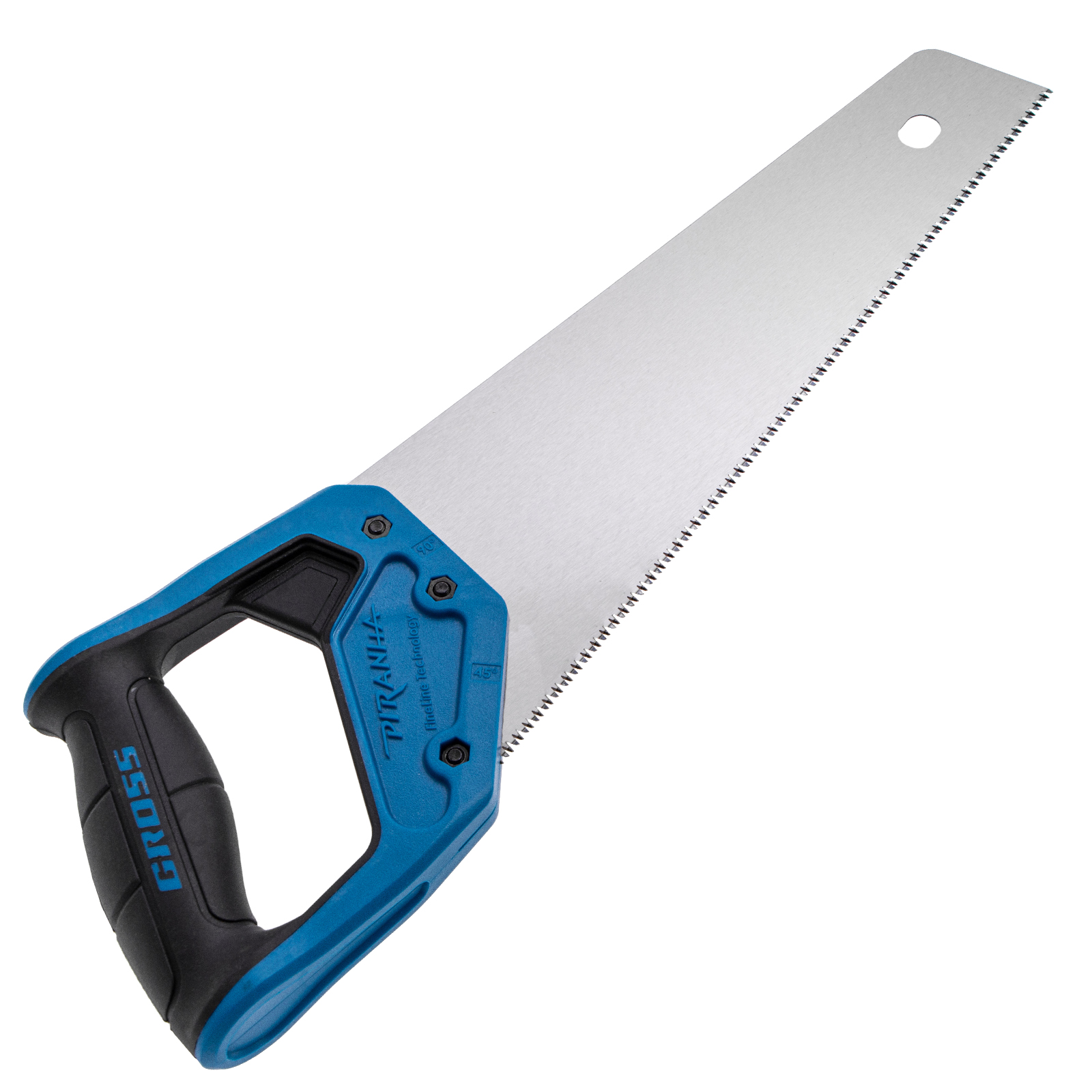 Ножовка по дереву Gross PIRANHA 24123 с полотном длиной 300 мм, калеными зубьями с 3D-заточкой и шагом 11 TPI, с 2-компонентной рукояткой, предназначена для распиловки заготовок из древесины, ДСП, ДВП, МДФ и ламината, а также из пластических материалов, таких как пенополистирол и полиуретан. Может производить продольный и поперечный распил. Мелкие зубья с шагом 11 TPI позволяют выполнять точный и чистый рез. Ножовка обладает высокой производительностью благодаря трехгранной заточке зубьев. Инструмент используется в столярном деле.