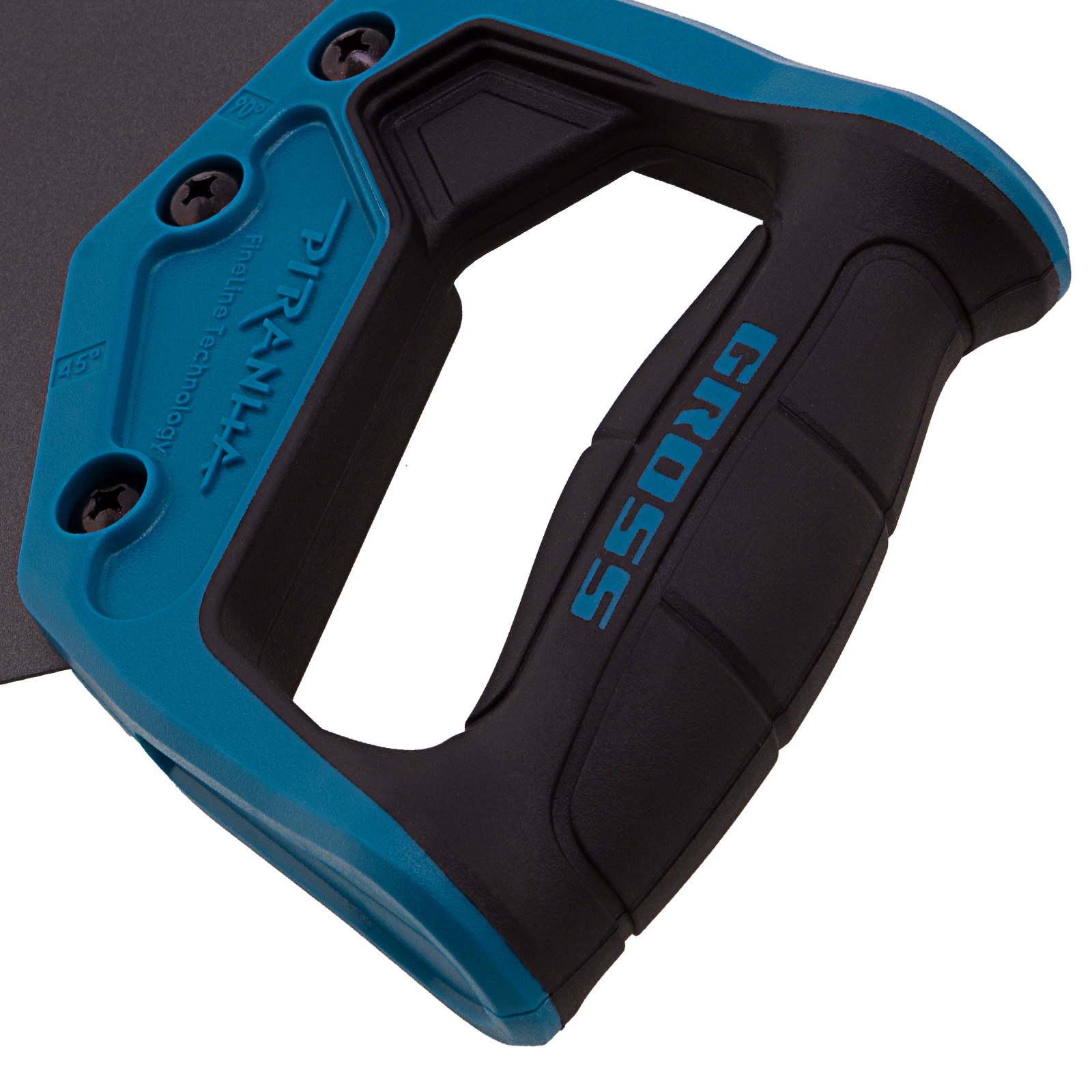 Ножовка по дереву Gross PIRANHA 24106 с полотном длиной 450 мм, калеными зубьями с 3D-заточкой и шагом 11-12 TPI, тефлоновым покрытием полотна и 2-компонентной рукояткой, используется для продольного и поперечного распиливания древесины различных пород, МДФ, ДСП, ДВП, ламината, а также пенополистирола, полиуретана и других синтетических материалов. Рабочая часть состоит из мелких зубьев с шагом 2-2,3 мм, что позволяет получить ровный и чистый рез. Трехгранная заточка зубьев увеличивает производительность инструмента без потери качества распиловки. Ножовка предназначена для столярных работ.