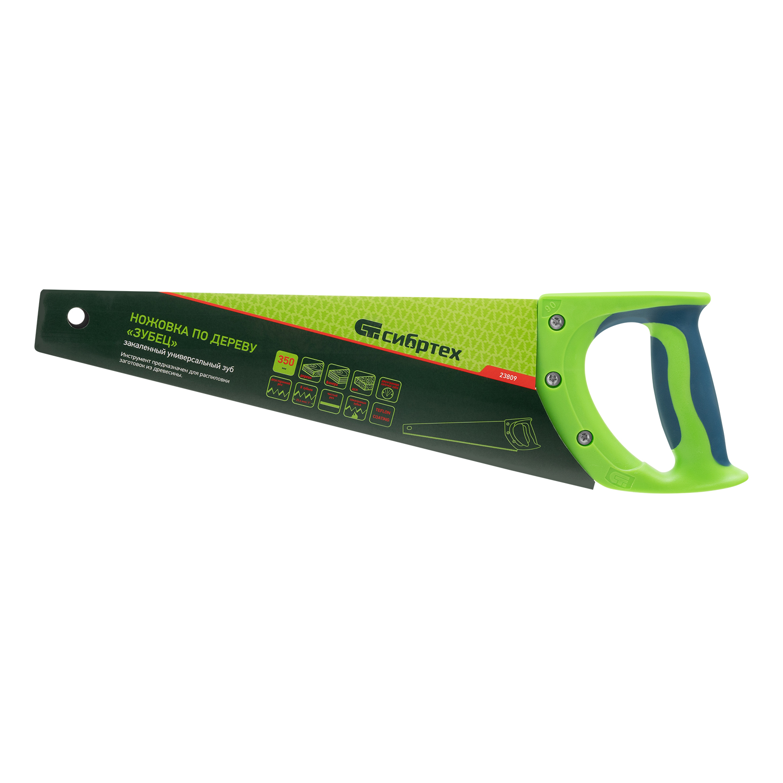 Ножовка по дереву Сибртех «Зубец» 23809 с полотном длиной 350 мм, с калеными зубьями с 2D-заточкой и шагом 7-8 TPI, с защитным покрытием и двухкомпонентной рукояткой, используется для продольного и поперечного распила заготовок из древесины, фанеры и ДСП. Подходит для двустороннего реза. Зубья с универсальным шагом 7-8 TPI обеспечивают оптимальную скорость и качество распиловки. Если режущая кромка затупится, ее можно будет заточить. Ножовка будет полезна в столярной мастерской, а также дома или на даче.