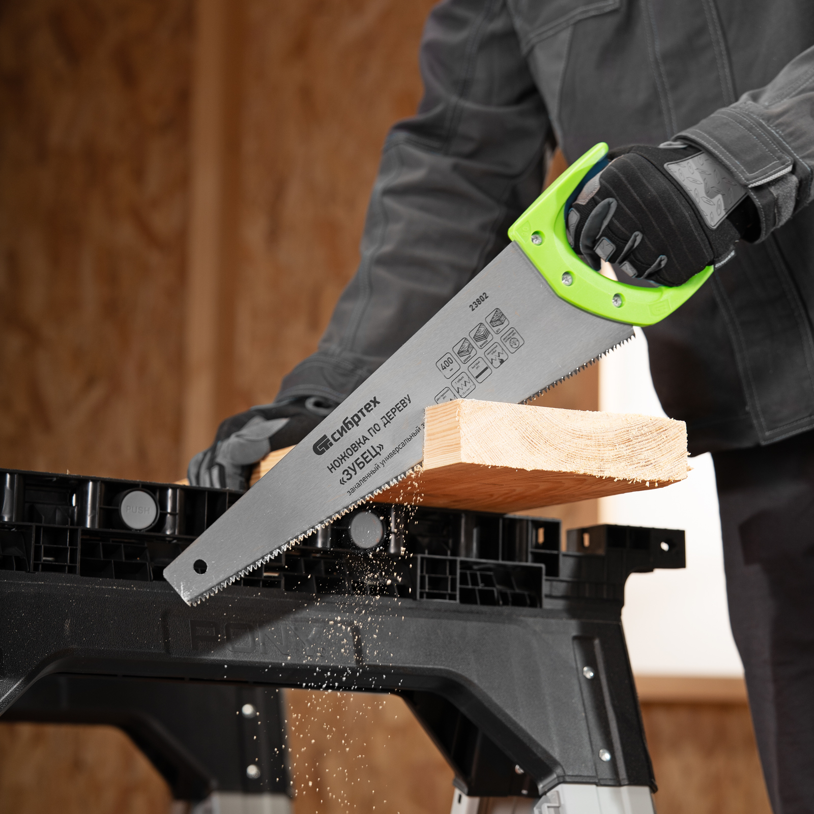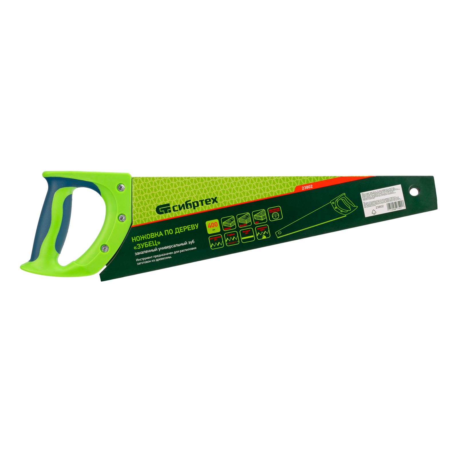 Ножовка по дереву "Зубец", 400 мм, 7-8 TPI, каленый зуб 2D, двухкомпонентная рукоятка Сибртех в Екатеринбурге