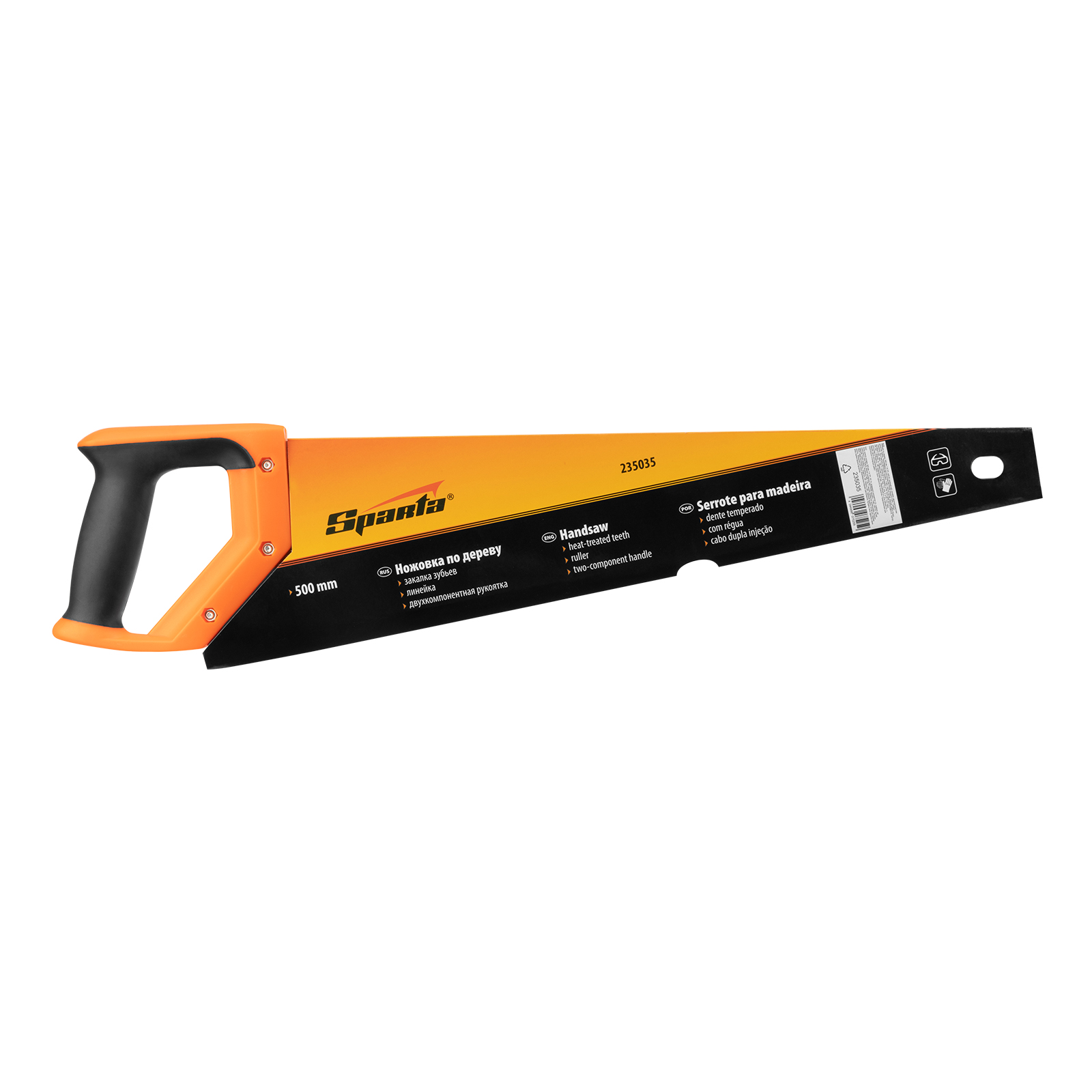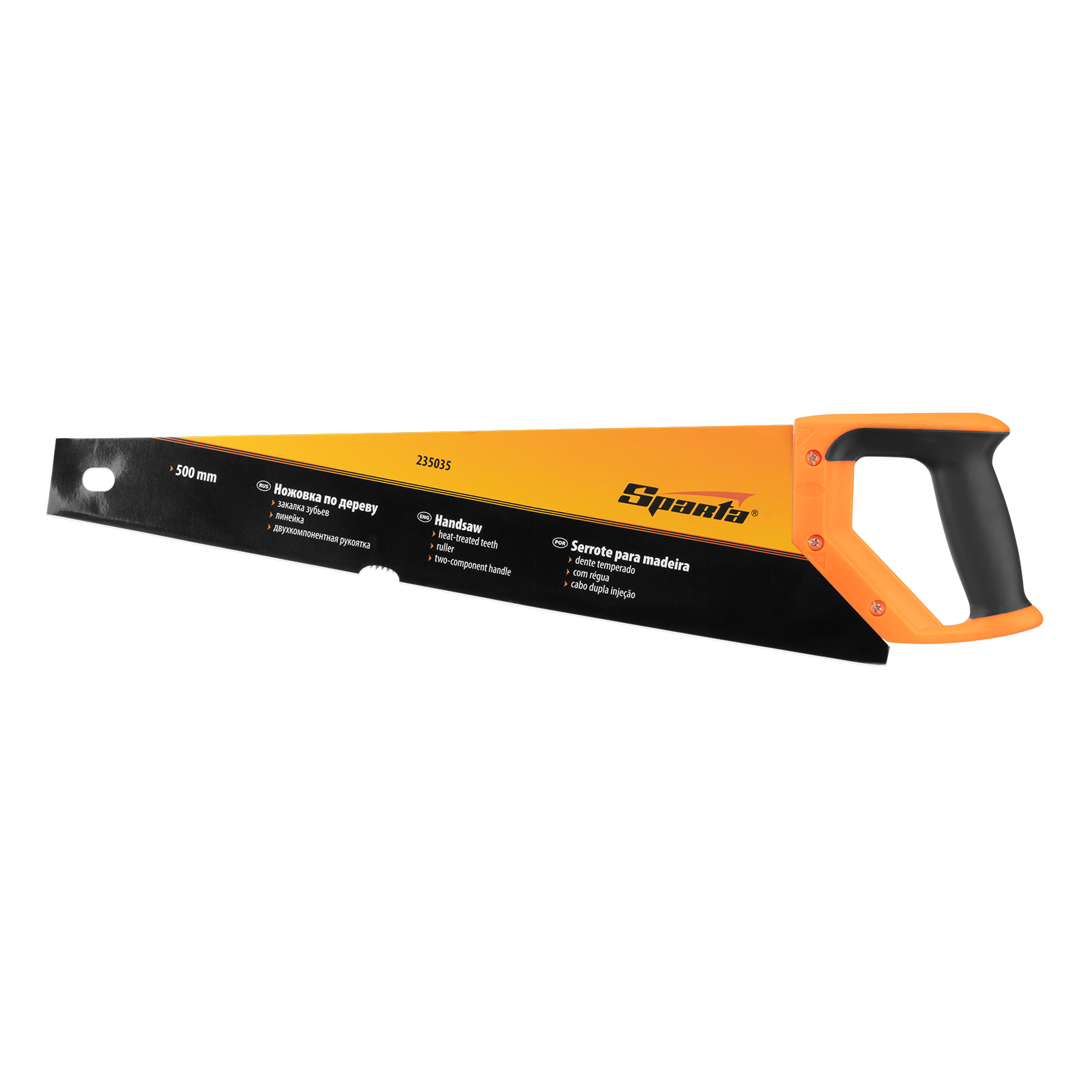 Ножовка по дереву Sparta 235035 с полотном длиной 500 мм, с калеными зубьями с 2D-заточкой и шагом 7-8 TPI, с двухкомпонентной рукояткой, используется во время столярных и плотницких работ. Зубья имеют двухгранную заточку, поэтому ножовкой можно пилить как от себя, так и на себя. Шаг зубьев составляет 7-8 TPI, что обеспечивает быстрый рез. В случае снижения производительности пилы ее рабочую кромку можно заточить.