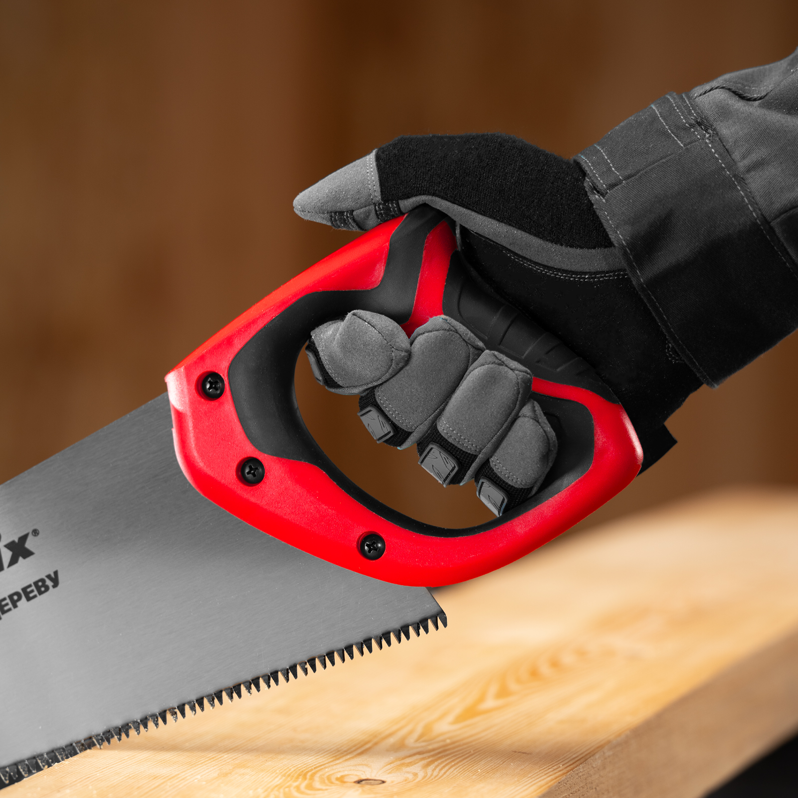 - Комфорт во время работы — эргономичная двухкомпонентная рукоятка с резиновыми вставками имеет усовершенствованный дизайн и удобно лежит в руке, снижая нагрузку на кисть при длительном пилении.