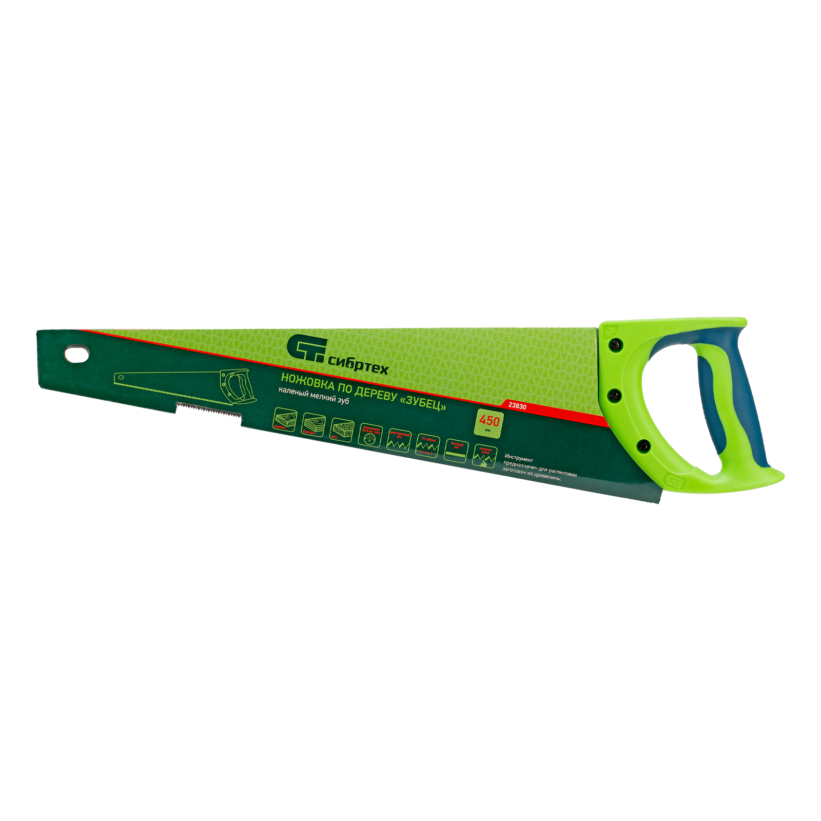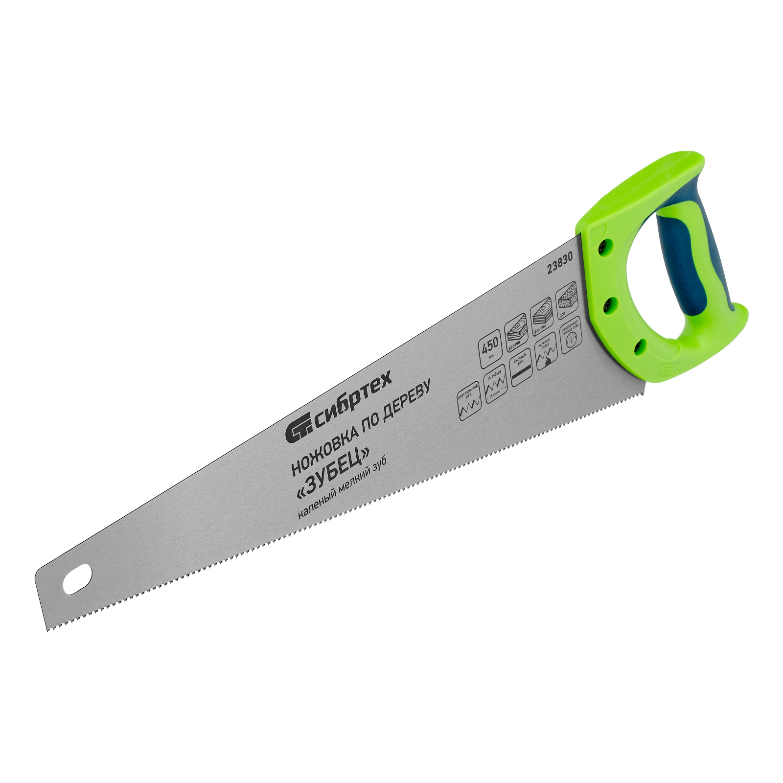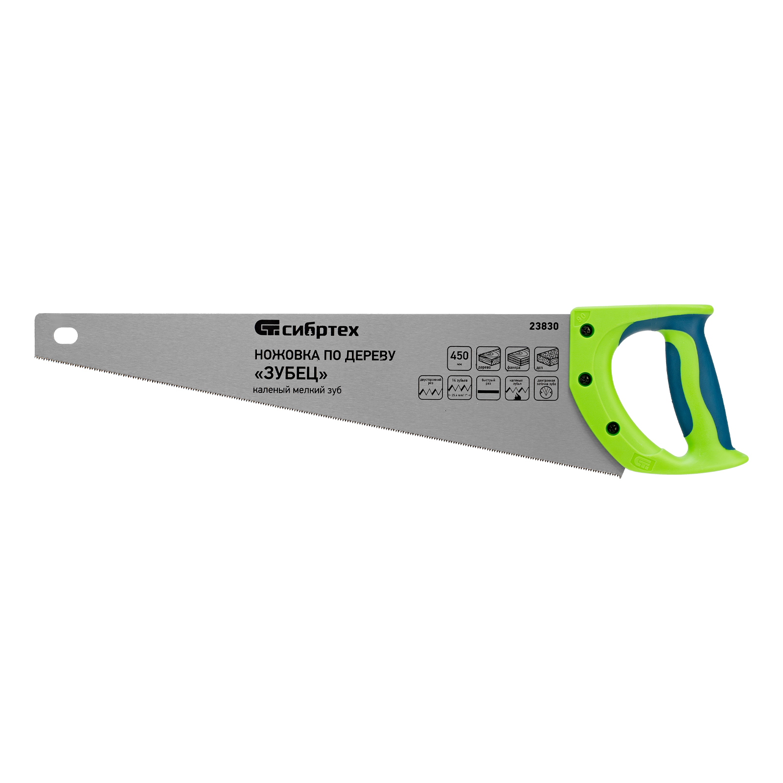Ножовка по дереву Сибртех «Зубец» 23830 с полотном длиной 450 мм, калеными зубьями с 2D-заточкой и шагом 14 TPI, двухкомпонентной рукояткой, предназначена для точных пильных работ по древесине, фанере и ДСП. Подходит для двустороннего реза. Режущая часть с мелкими зубьями в количестве 14 на дюйм выполняет аккуратный и чистый распил. При необходимости кромку ножовки можно заточить. Инструмент будет полезен в столярной мастерской, а также пригодится в быту.