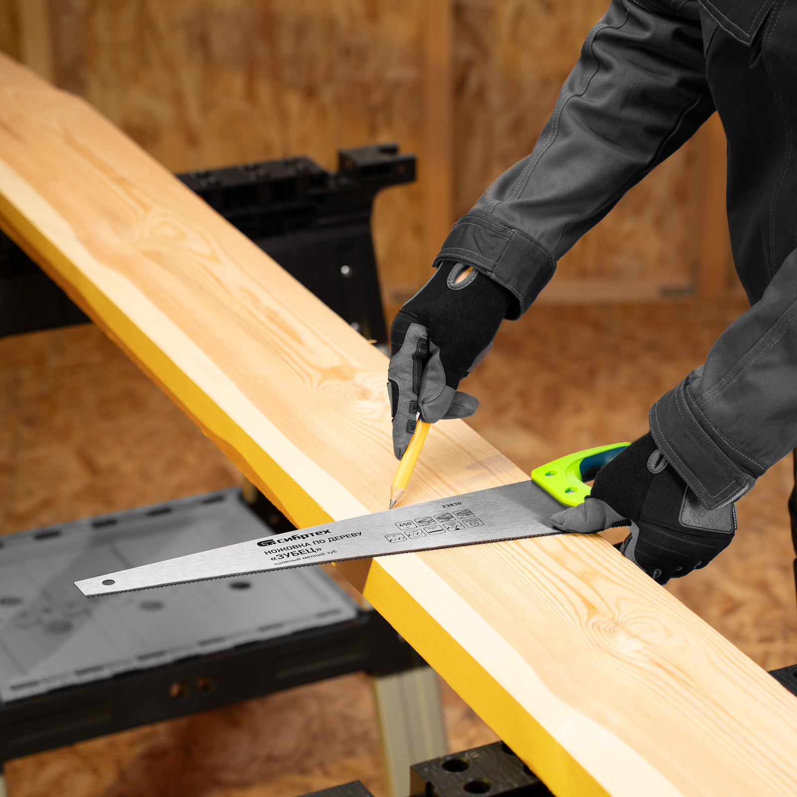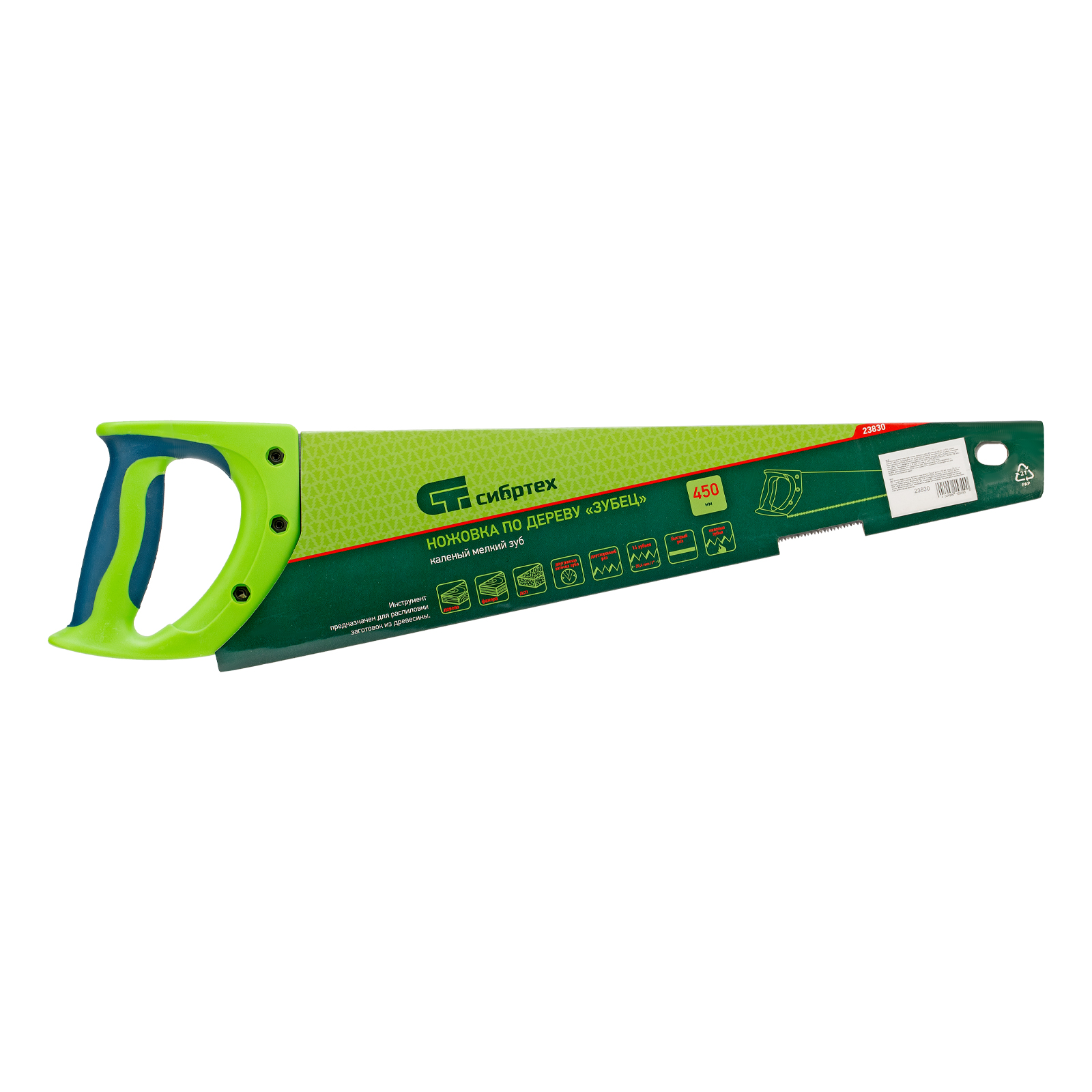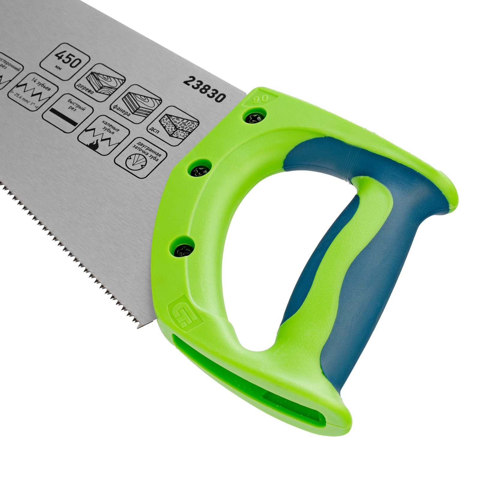 - Комфорт во время работы — рукоятка обрезинена, поэтому не скользит в ладони и снижает нагрузку на кисть руки во время длительного пиления.