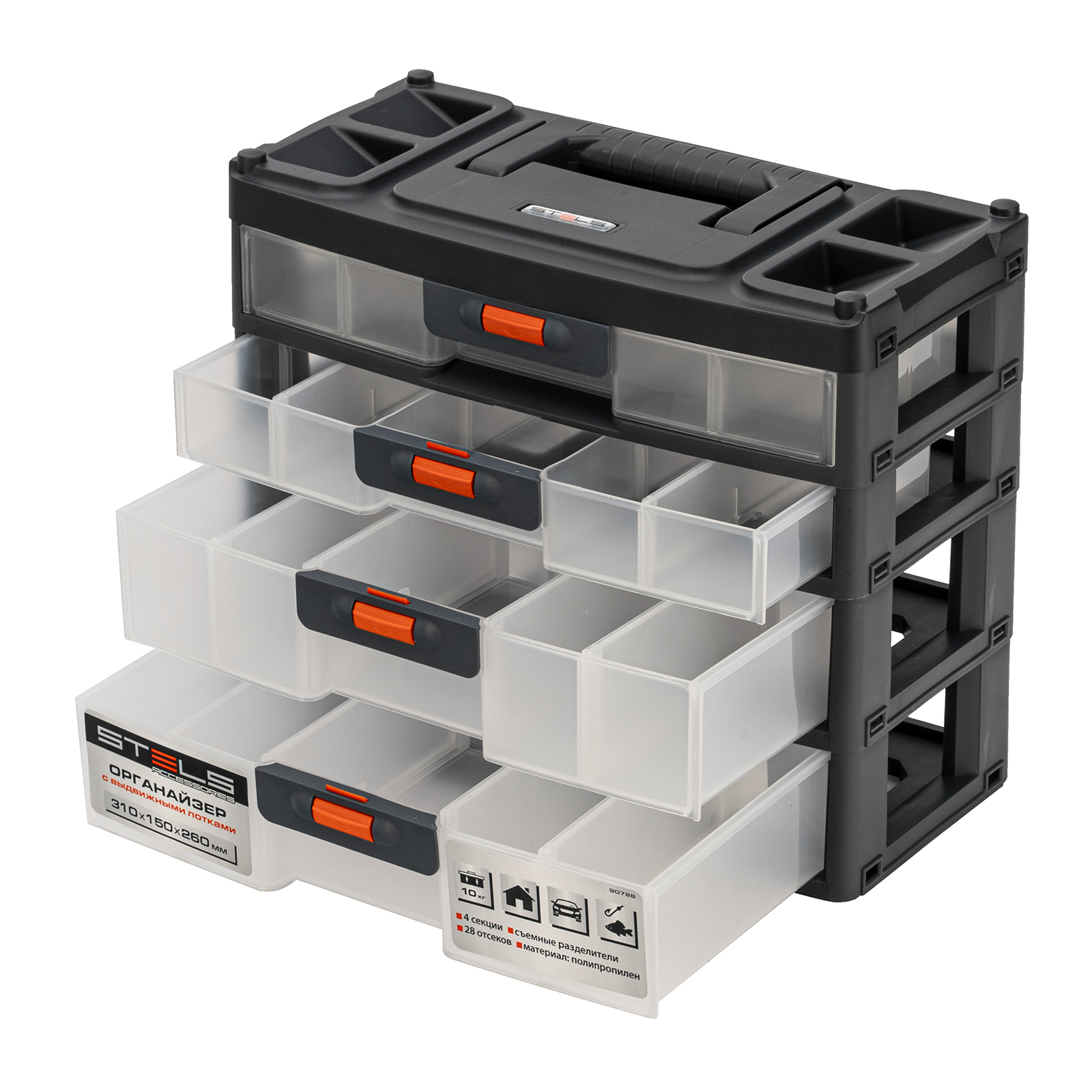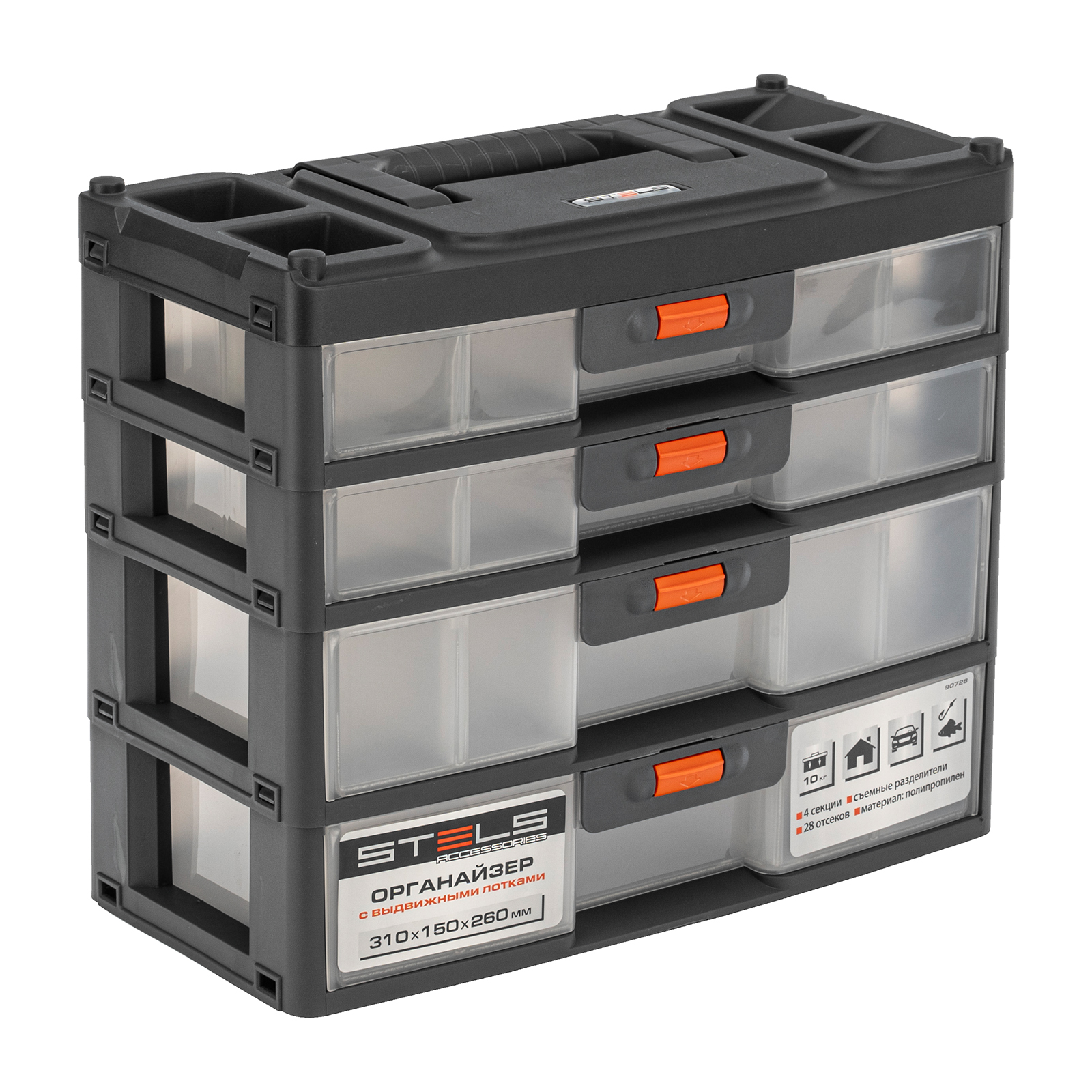 Органайзер для хранения с выдвижными лотками 310х150х260мм, 4 секции, пластик Stels в Екатеринбурге