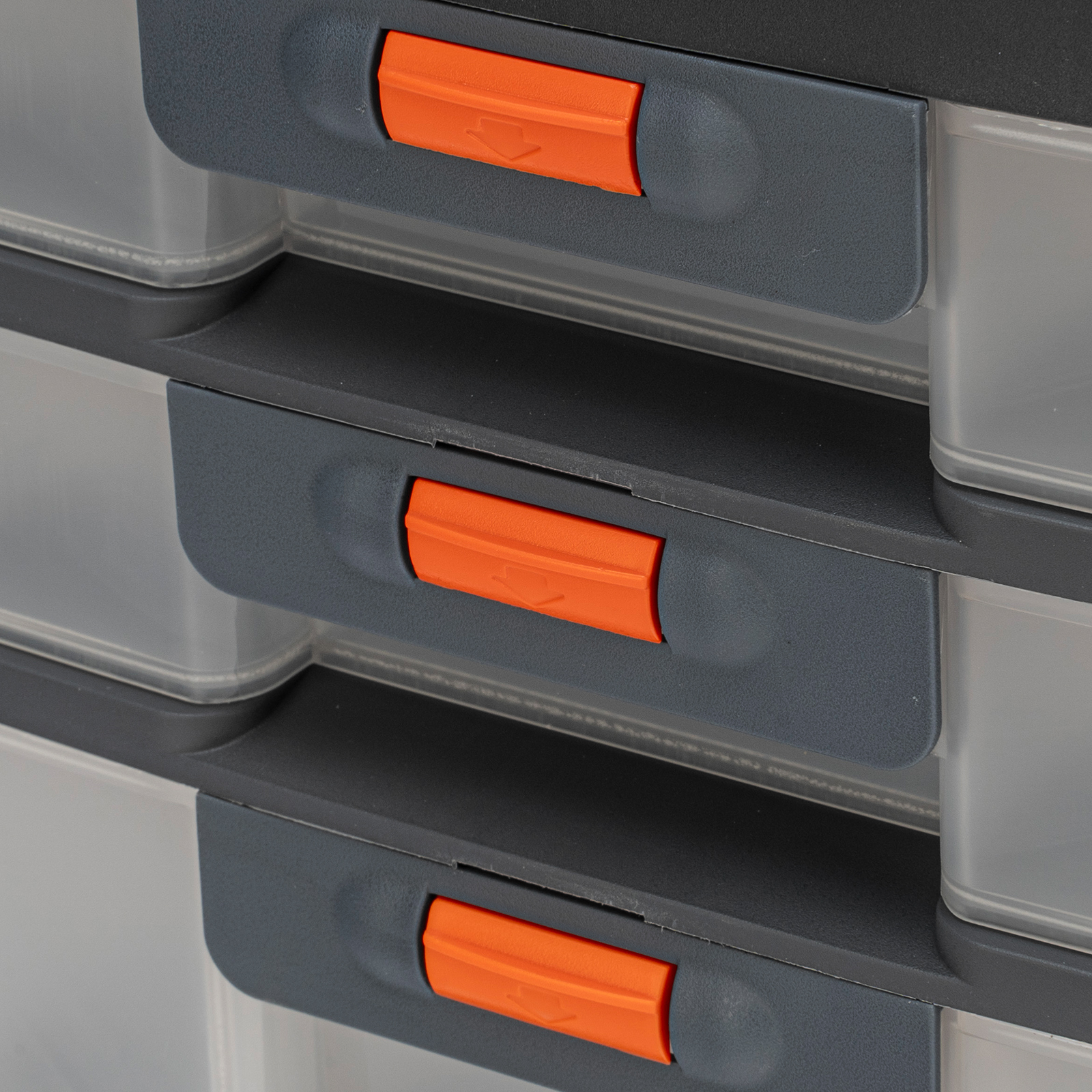 - Вместительность — в четырехъярусном органайзере помещается большое количество различных деталей.