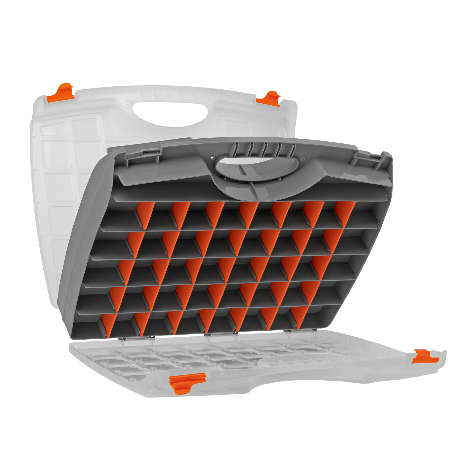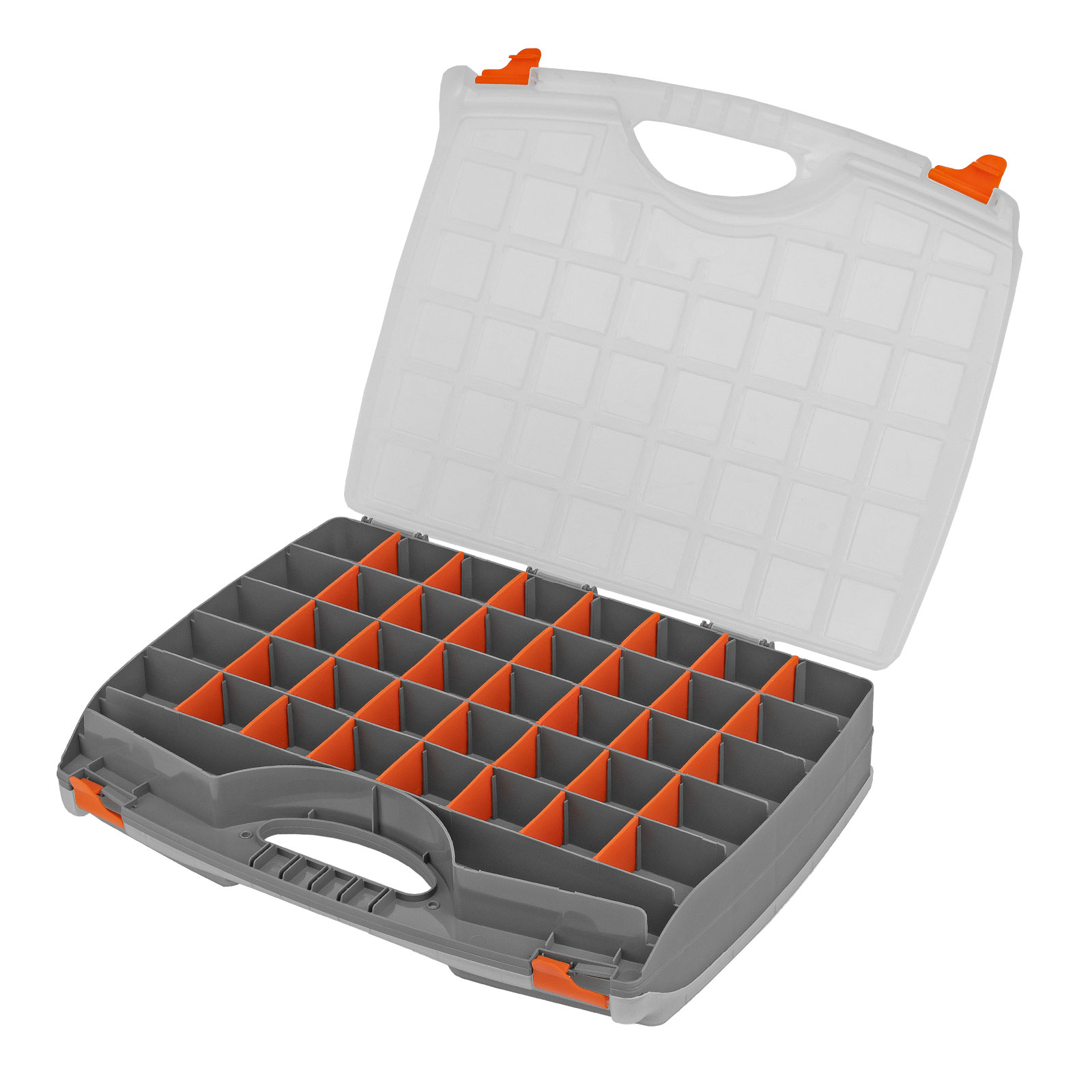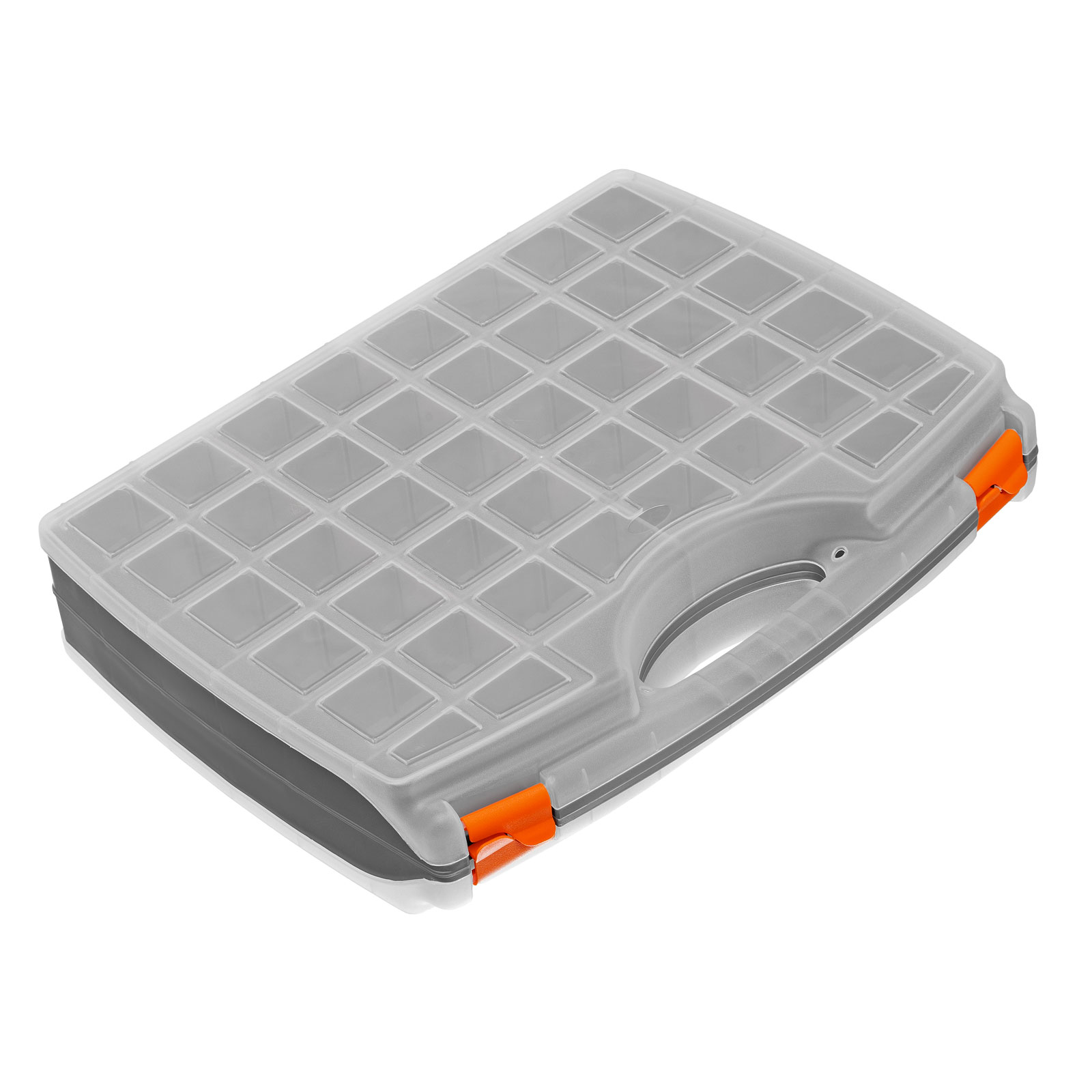 - Защелки и ручка обеспечивают удобство транспортировки органайзера.