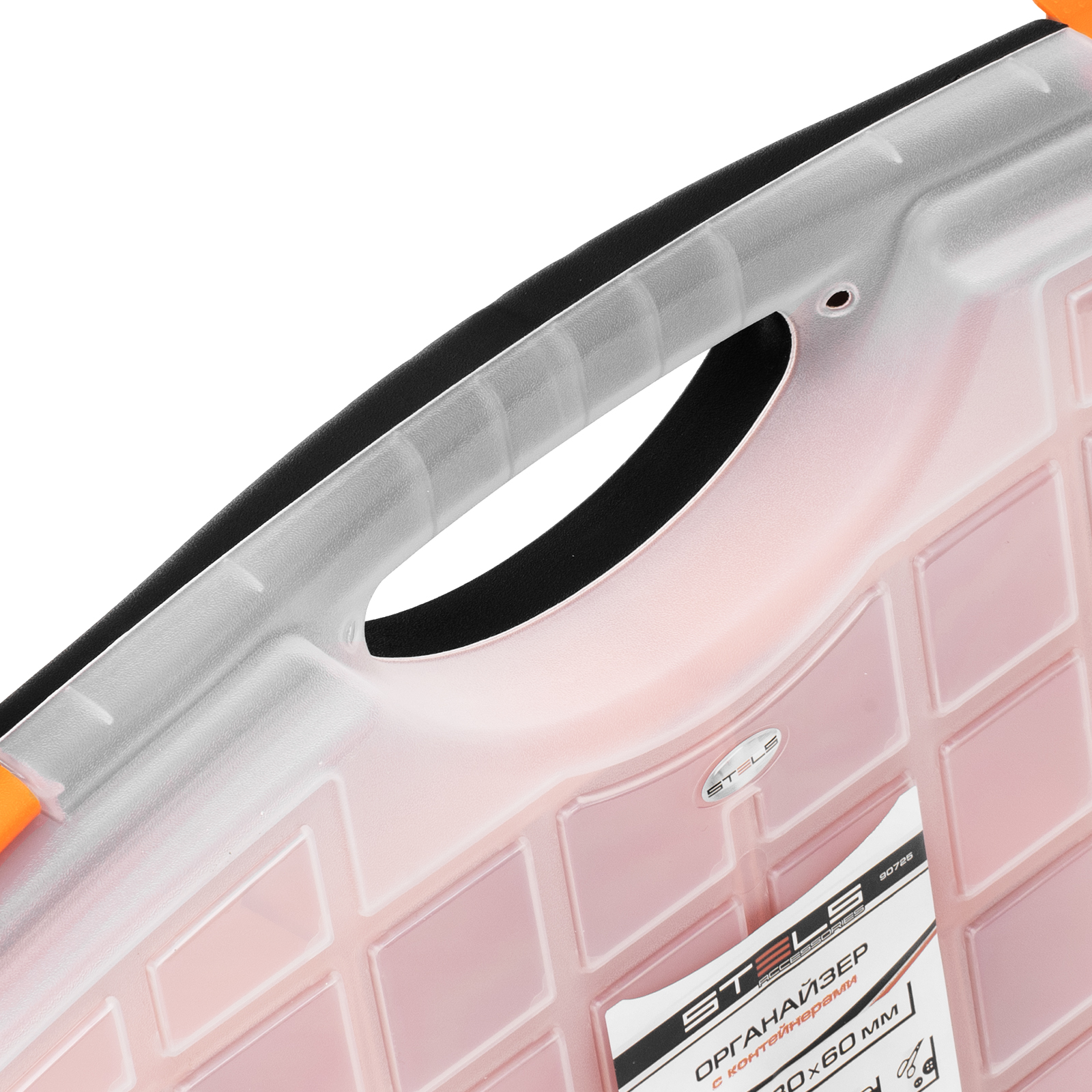 - Защелки и ручка обеспечивают удобство транспортировки органайзера.