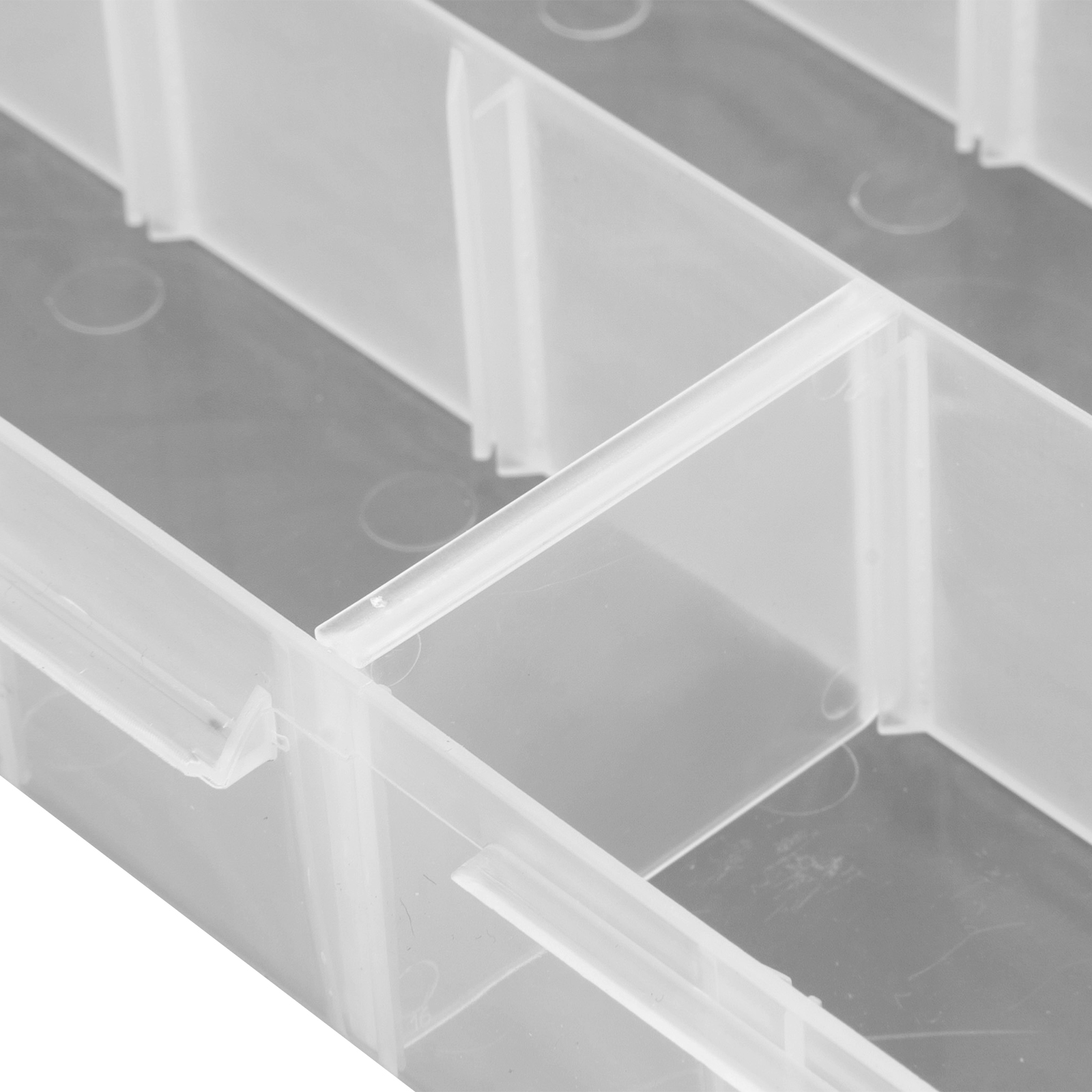 - Переставные перегородки — размер ячеек можно регулировать для сортировки мелких и больших предметов.