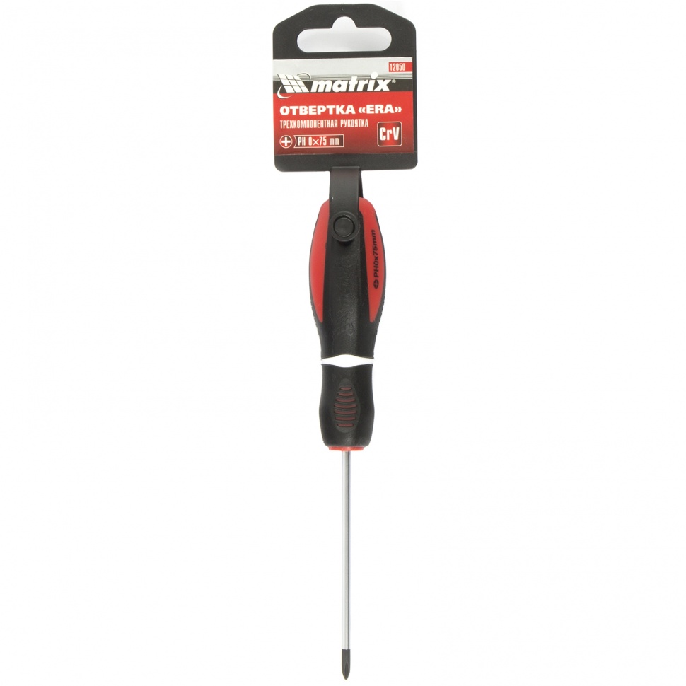 Отвертка Matrix «Era» 12050, PH0 х 75 мм, CrV, 3-х компонентная рукоятка, подходит для профессионального использования при осуществлении монтажных, ремонтных и строительных работ. С ее помощью можно выполнить монтаж/демонтаж крепежа Phillips «крест». Стержня длиной 75 мм достаточно для работ на поверхностях и в углублениях.