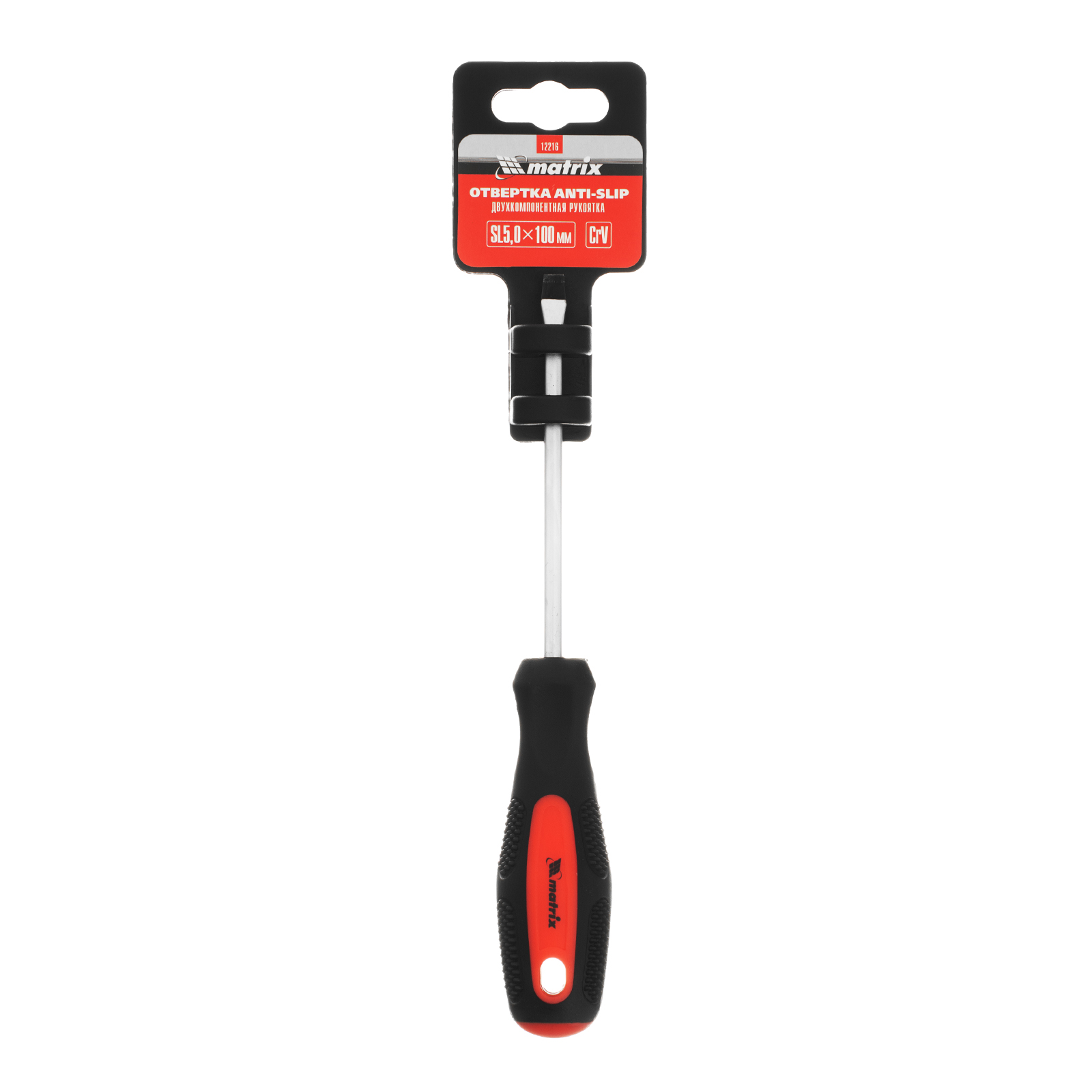 Отвертка Anti-Slip, SL5 х 100 мм, CrV, двухкомпонентная рукоятка Matrix в Екатеринбурге