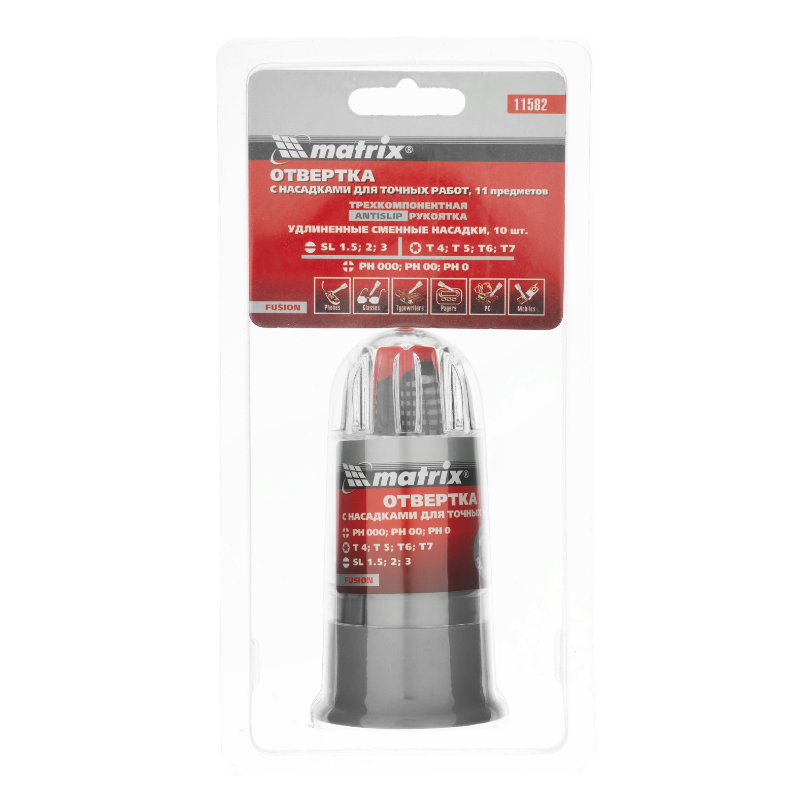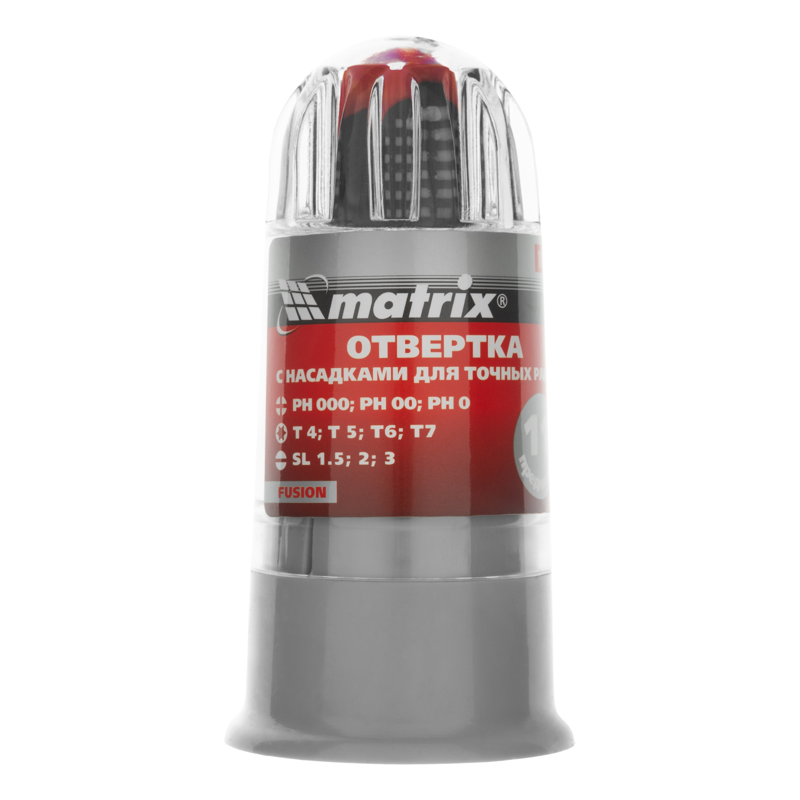 Отвертка для точных работ Fusion с насадками, 11 предметов, в пластиковом пенале, трехкомпонентная рукоятка Matrix в Екатеринбурге