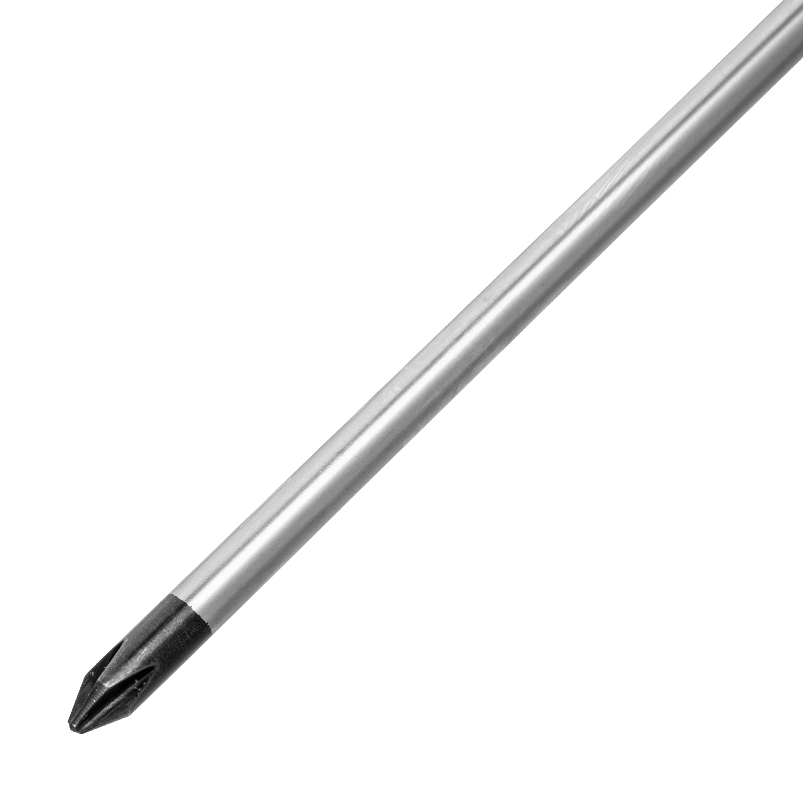 - Стержень и жало выполнены из износостойкой легированной стали CrV твердостью 50-52 HRC, что обеспечивает долгий срок службы отвертки.