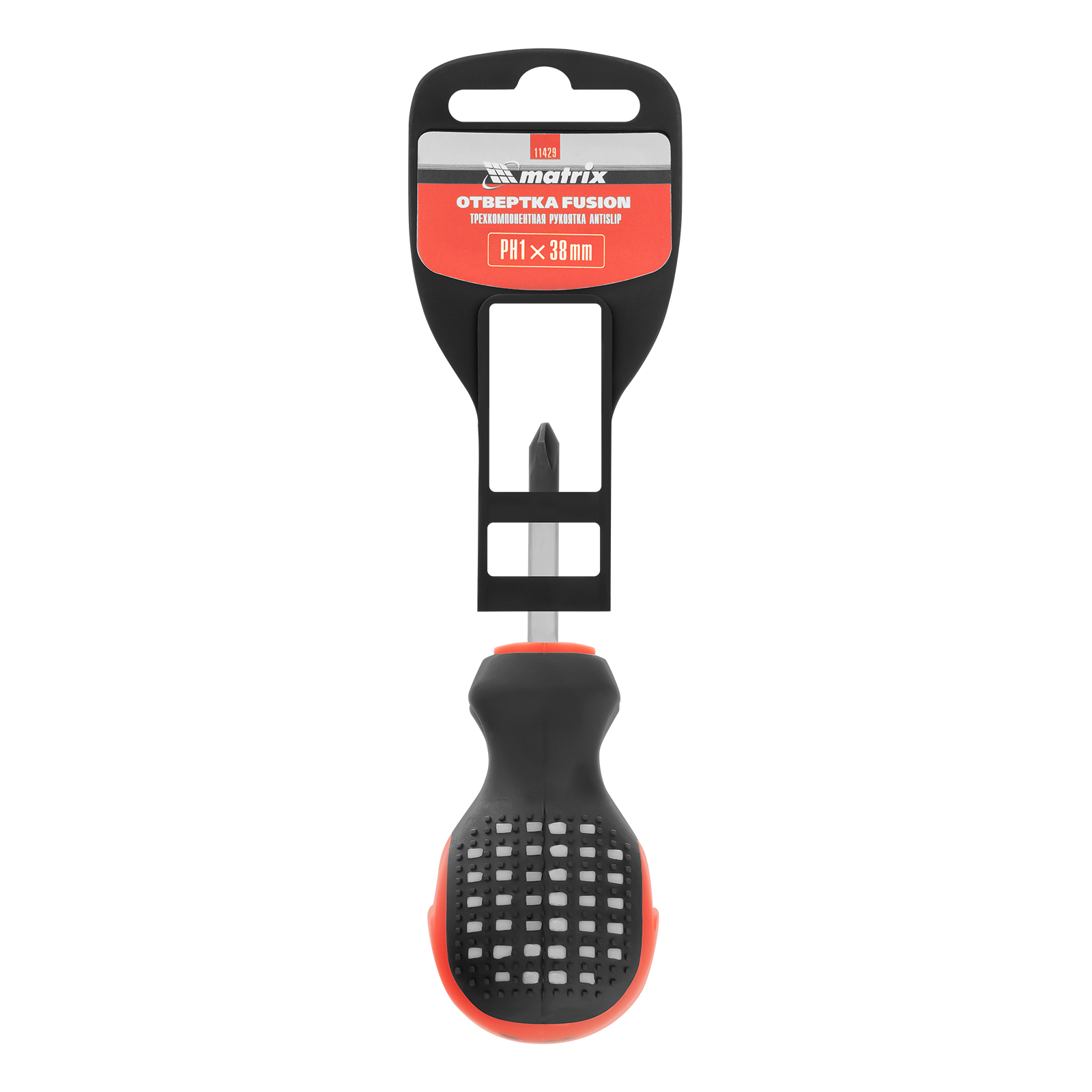 Отвертка Fusion, PH1 х 38 мм, CrV, трехкомпонентная рукоятка "Anti slip" Matrix в Екатеринбурге