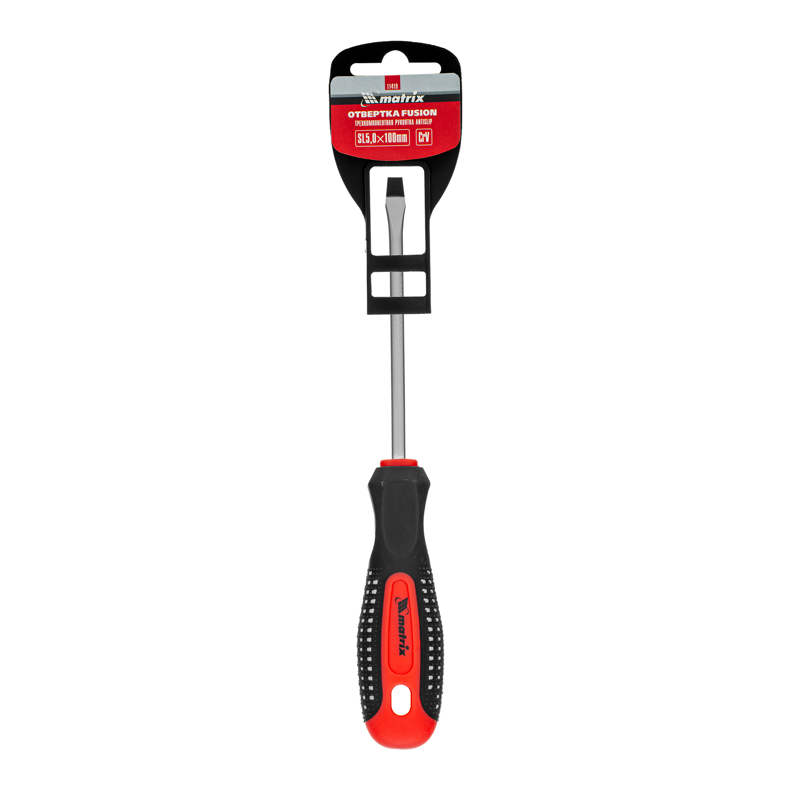 Отвертка Fusion, SL5 х 100 мм, CrV, трехкомпонентная рукоятка "Anti slip" Matrix в Екатеринбурге